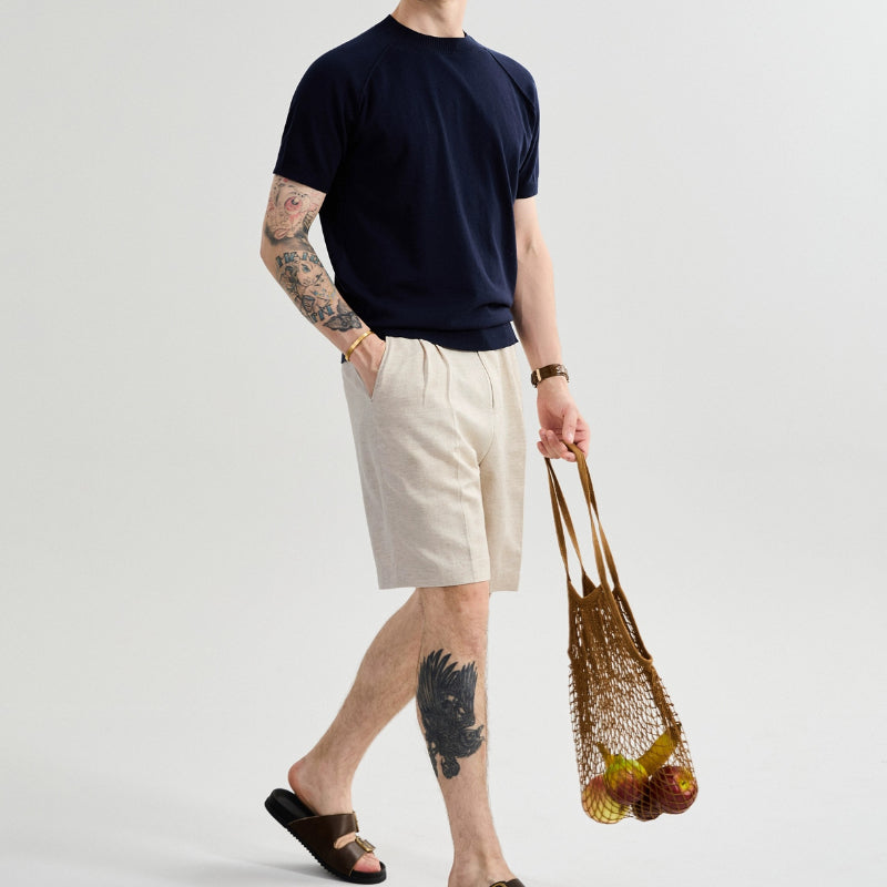 復古青年風圓領T恤,天絲涼感針織高彈性材質春夏舒適