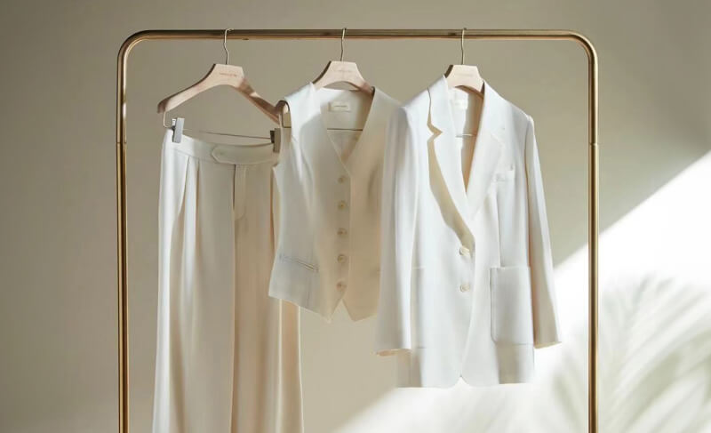 米白色三件式西裝,散發輕盈與優雅感,完美展現高端品味。