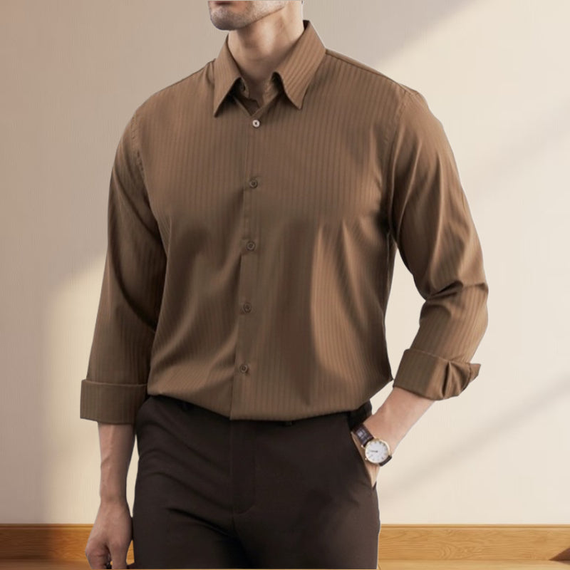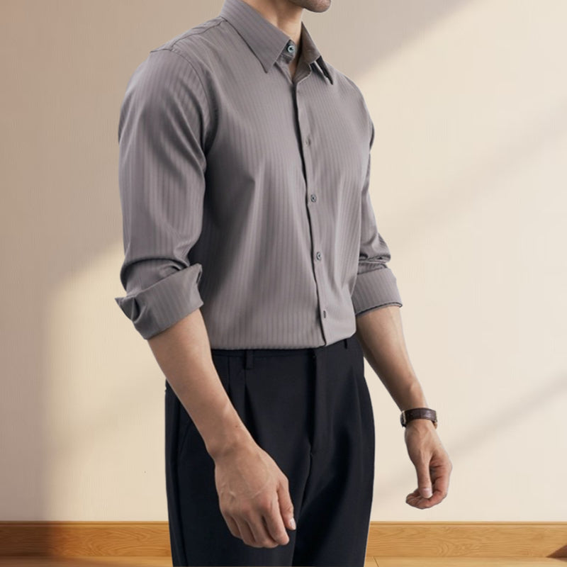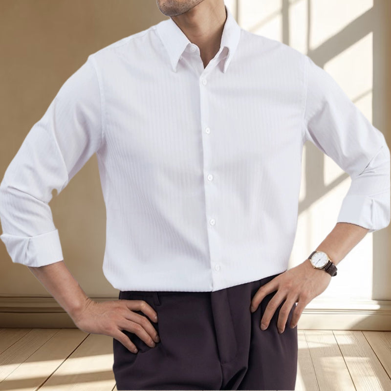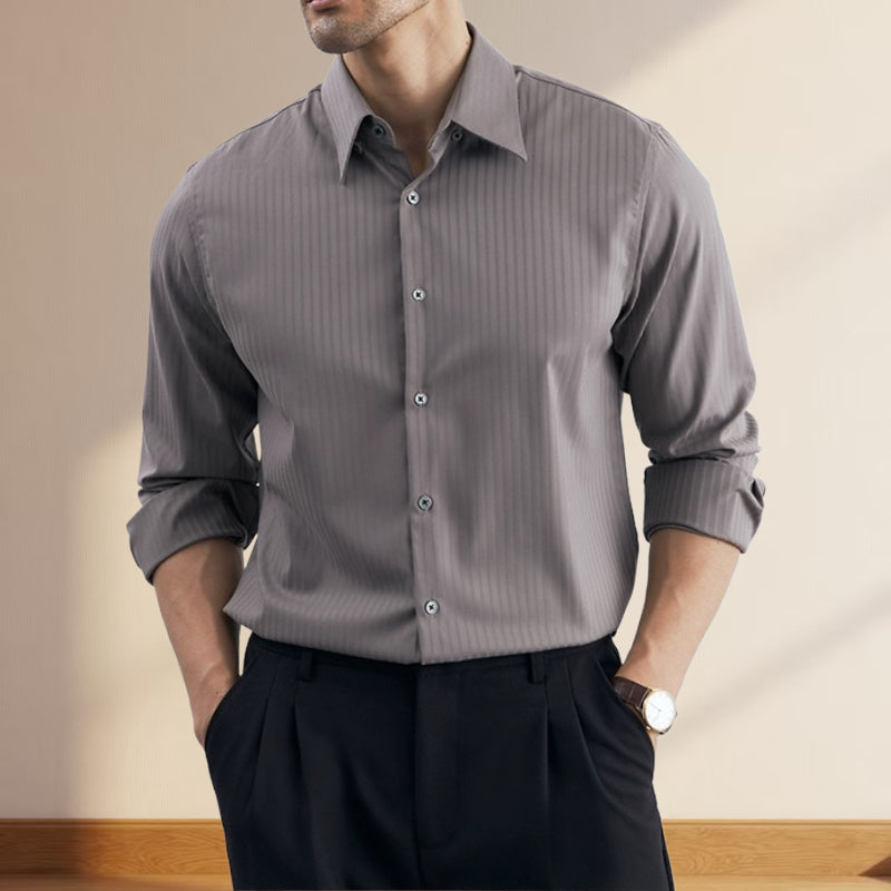 男士雅痞長袖商務通勤莫代爾舒適高級感休閒條紋襯衫