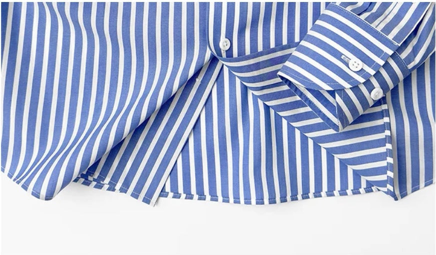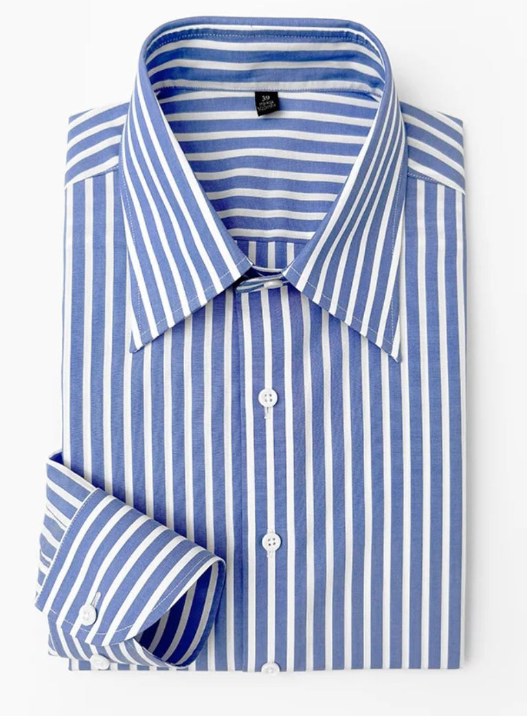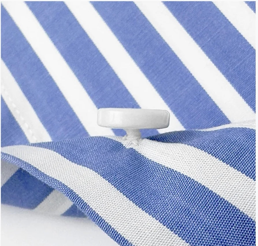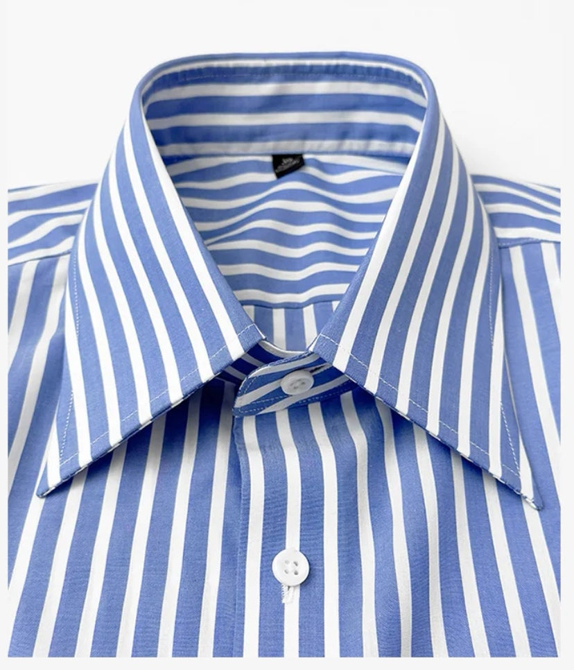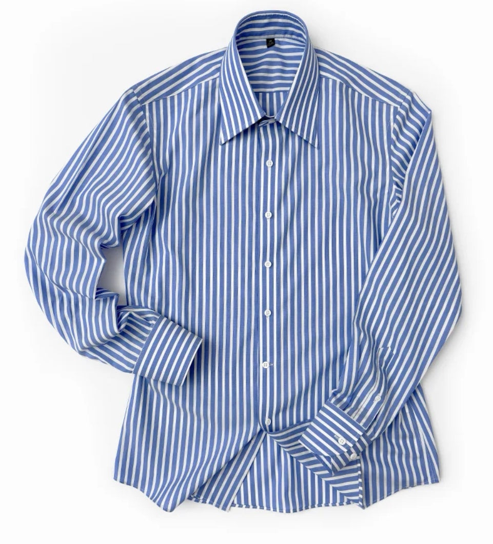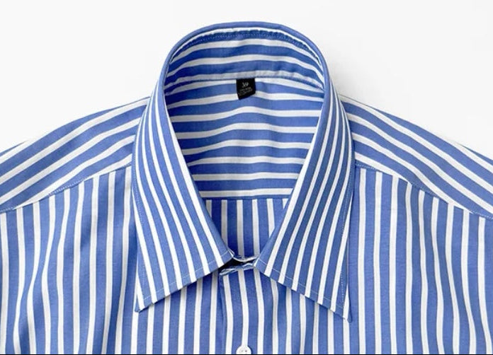 定制級意式藍白條大尖領襯衫