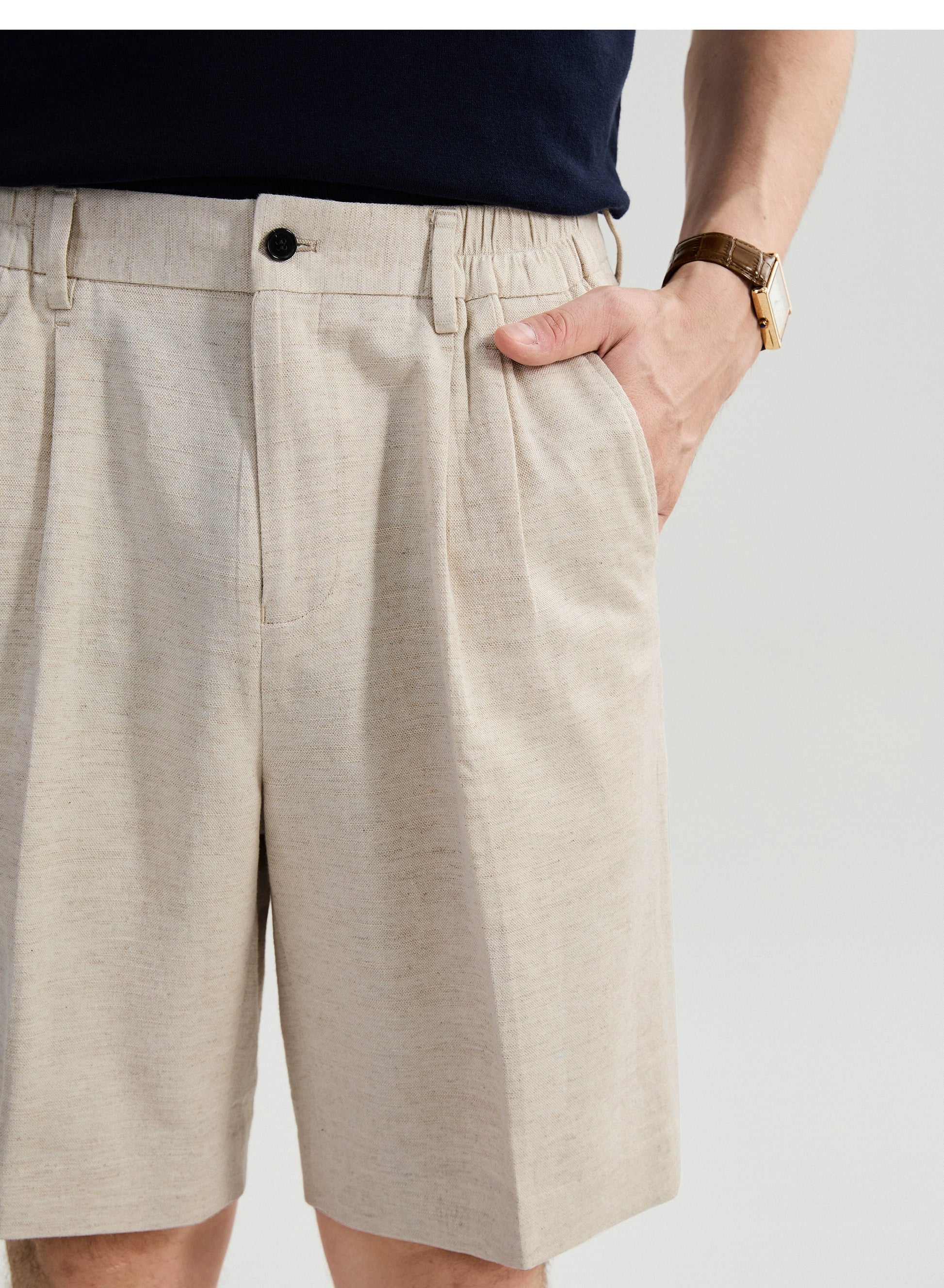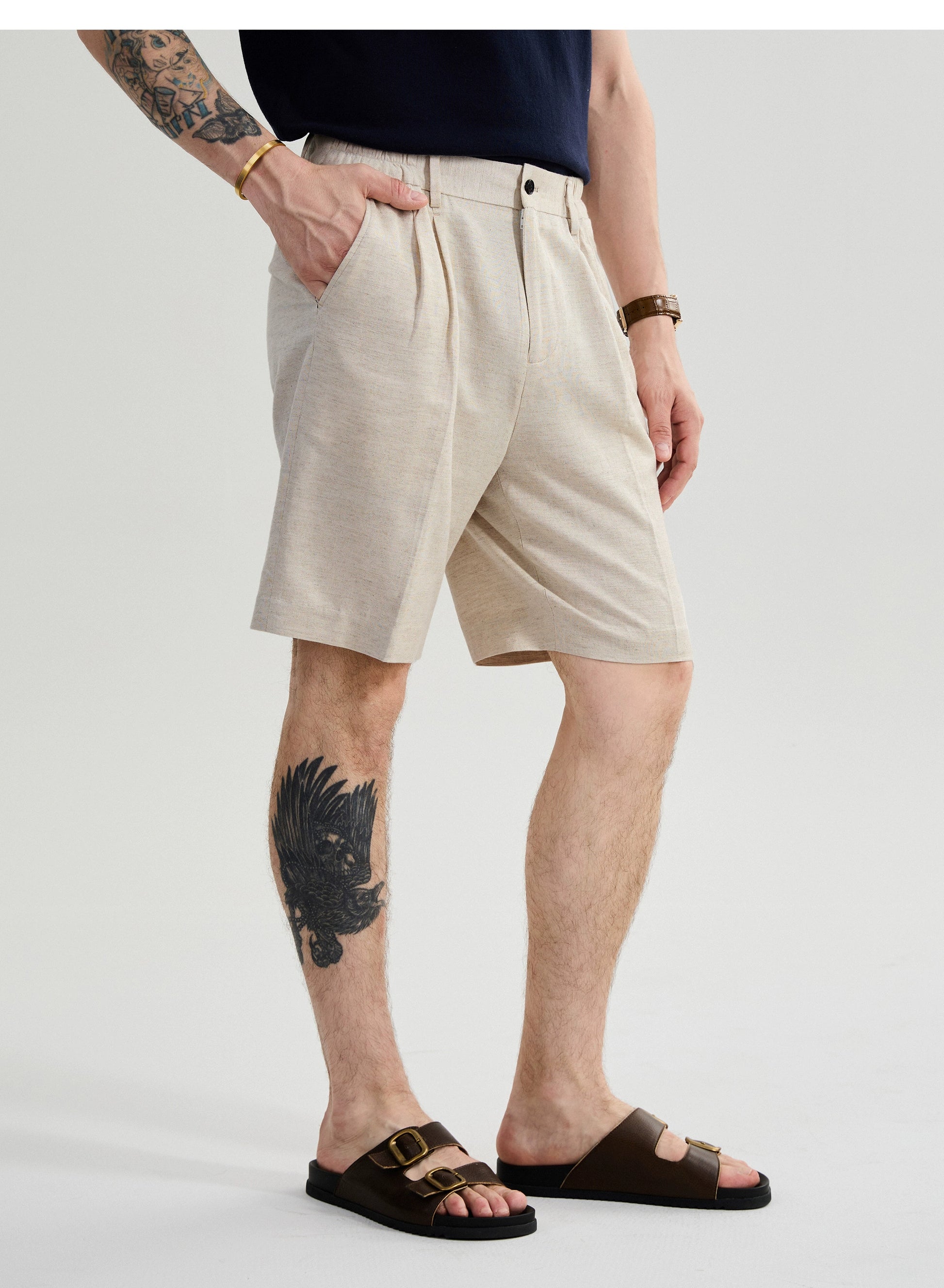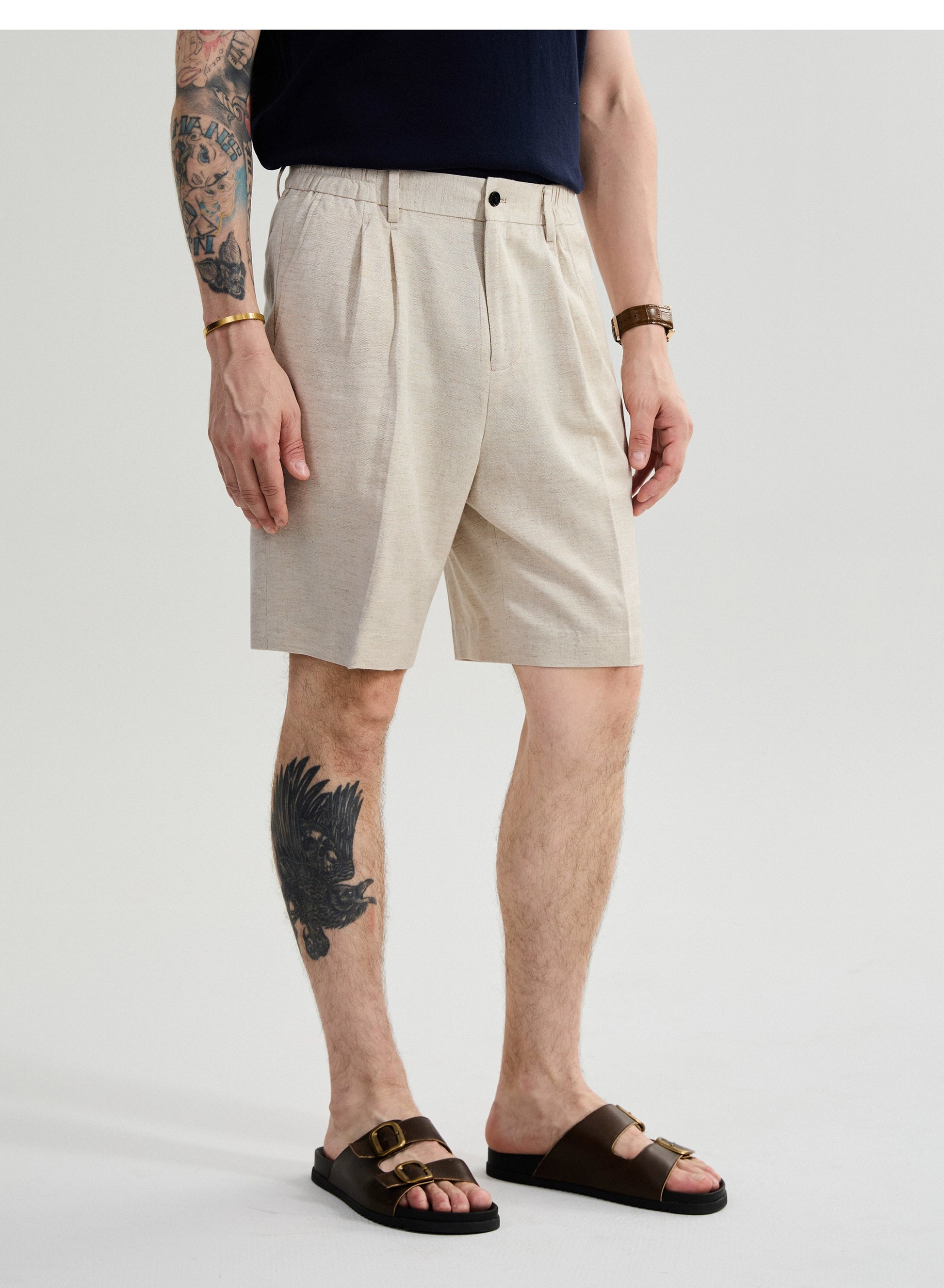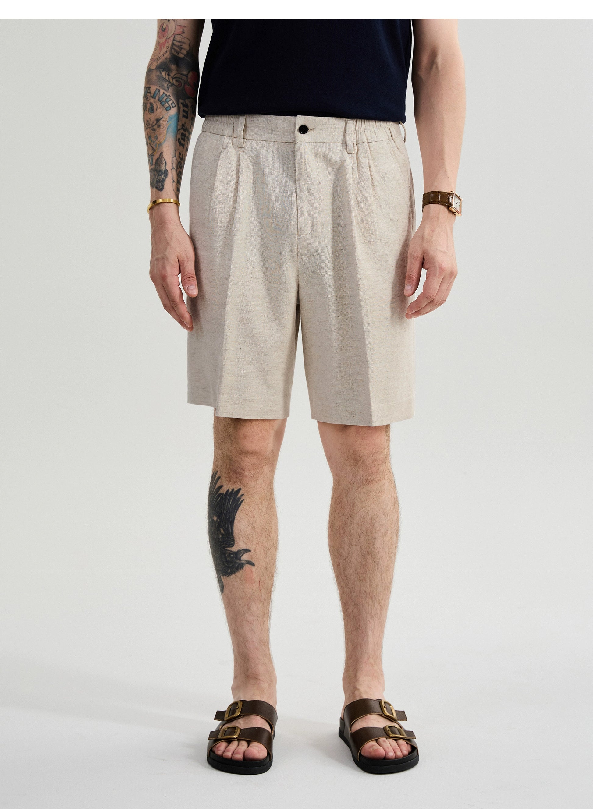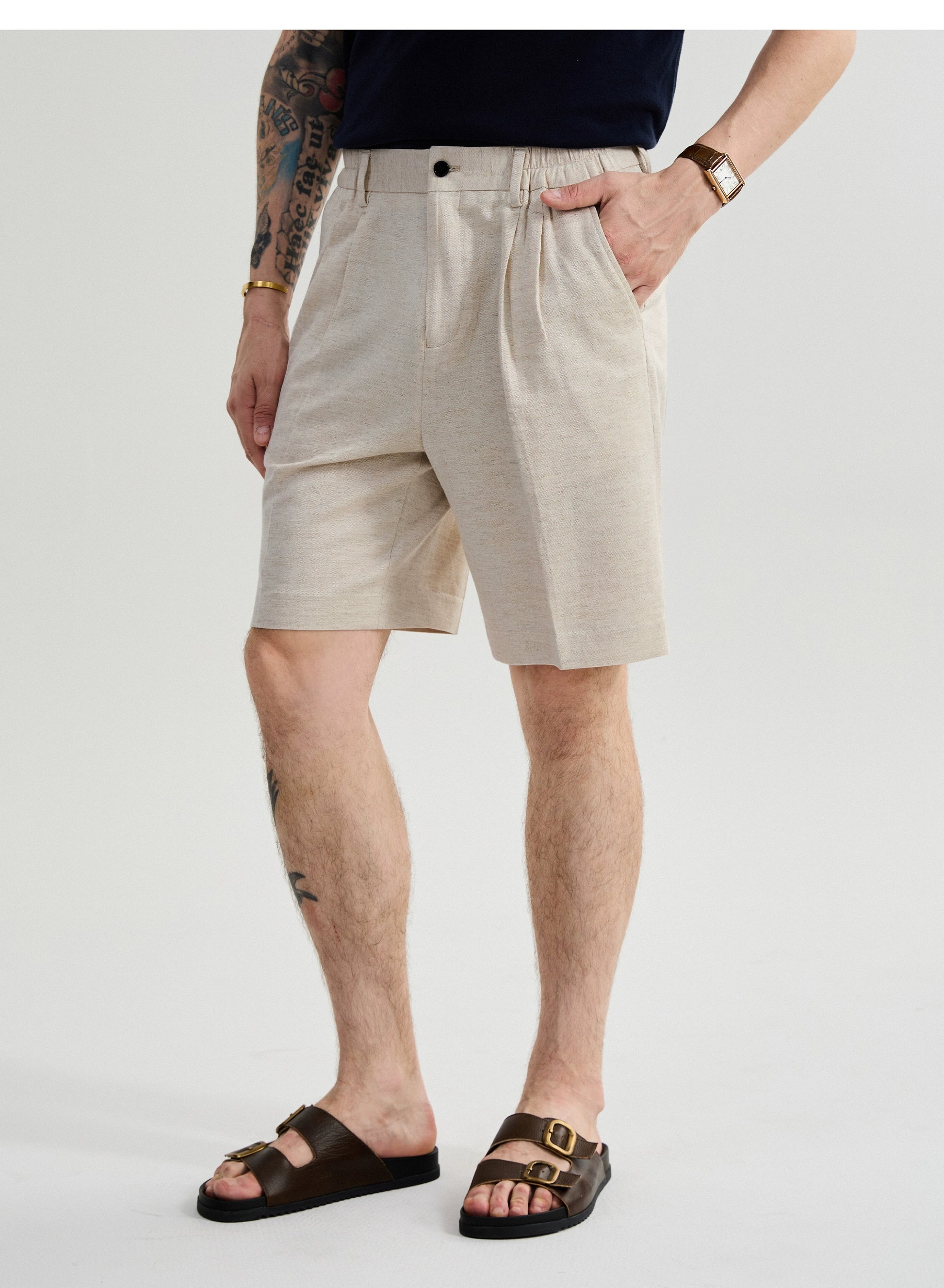 男士休閒直筒彈力腰圍亞麻混紡透氣復古百搭短褲