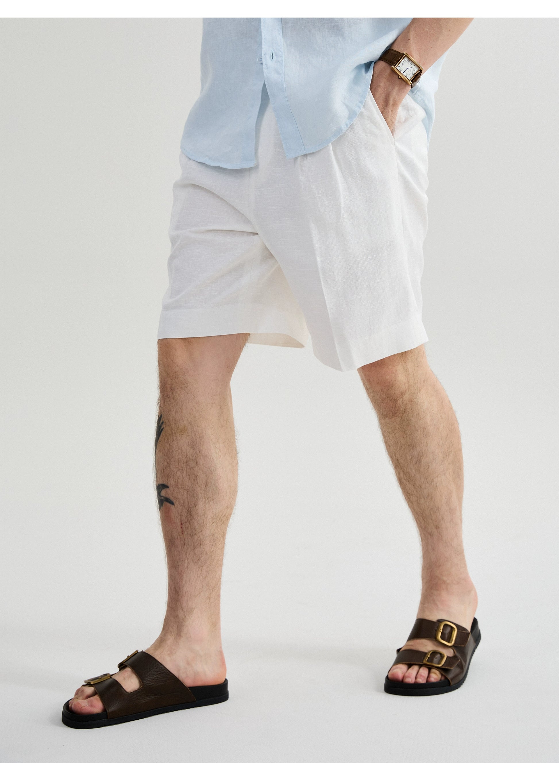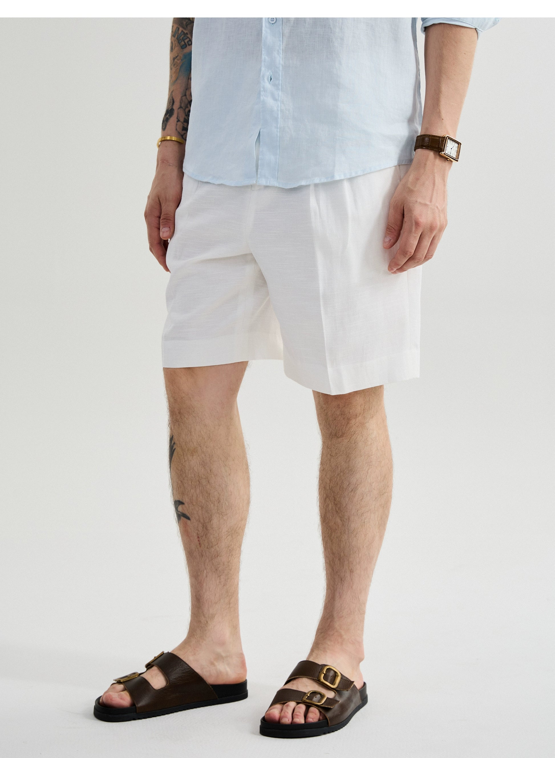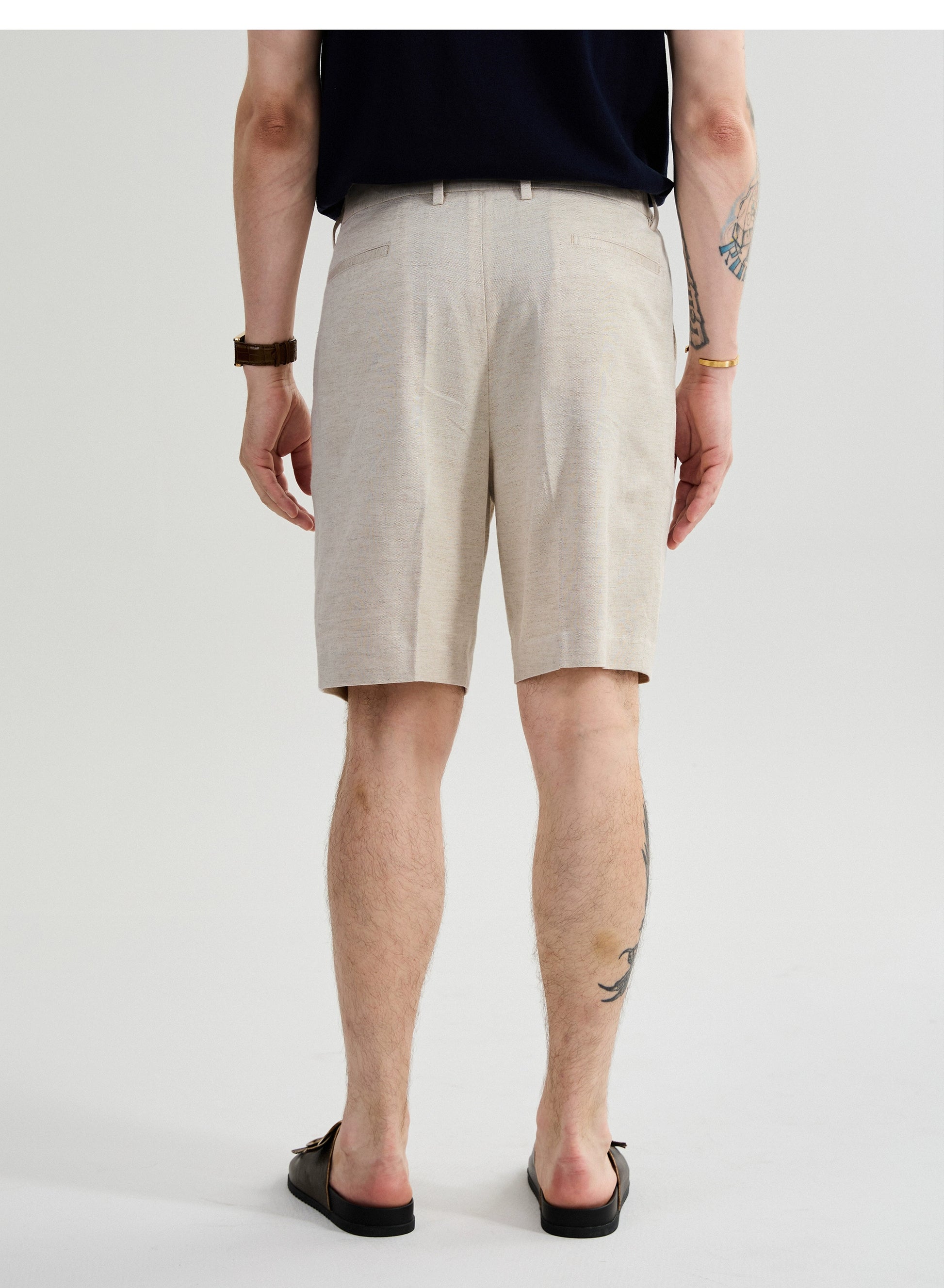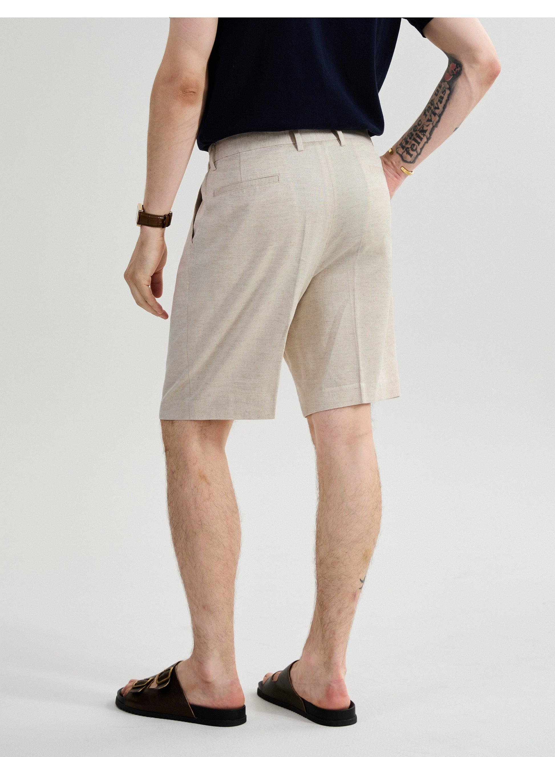 男士休閒直筒彈力腰圍亞麻混紡透氣復古百搭短褲