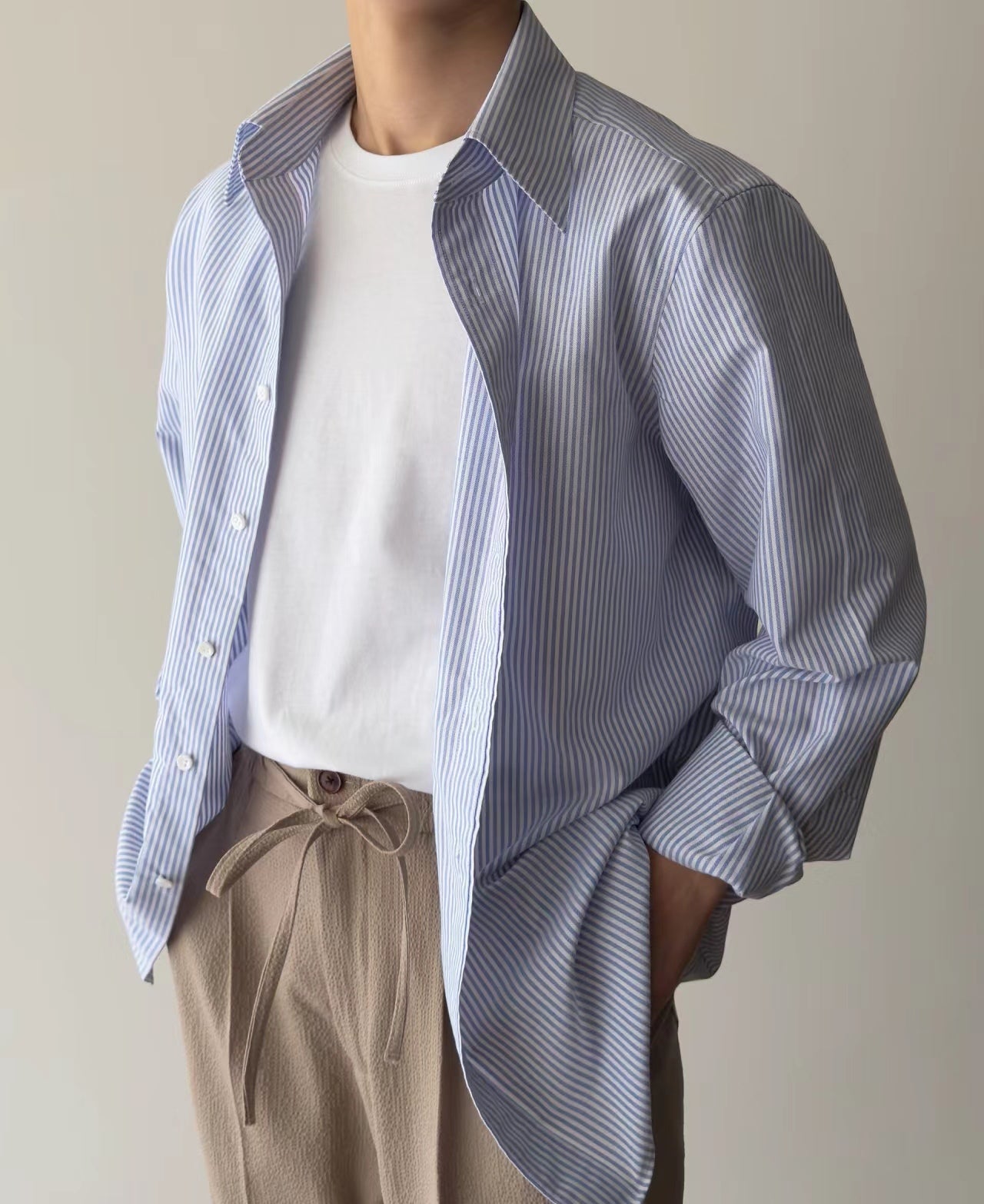Cleanfit乾淨穿搭條紋寬松襯衫