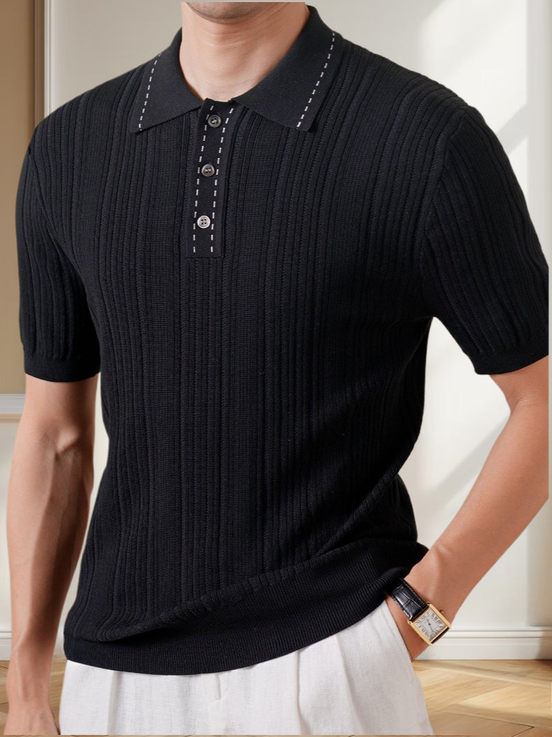 男士短袖夏季萊賽爾針織polo衫鏤空翻領設計感休閒T恤