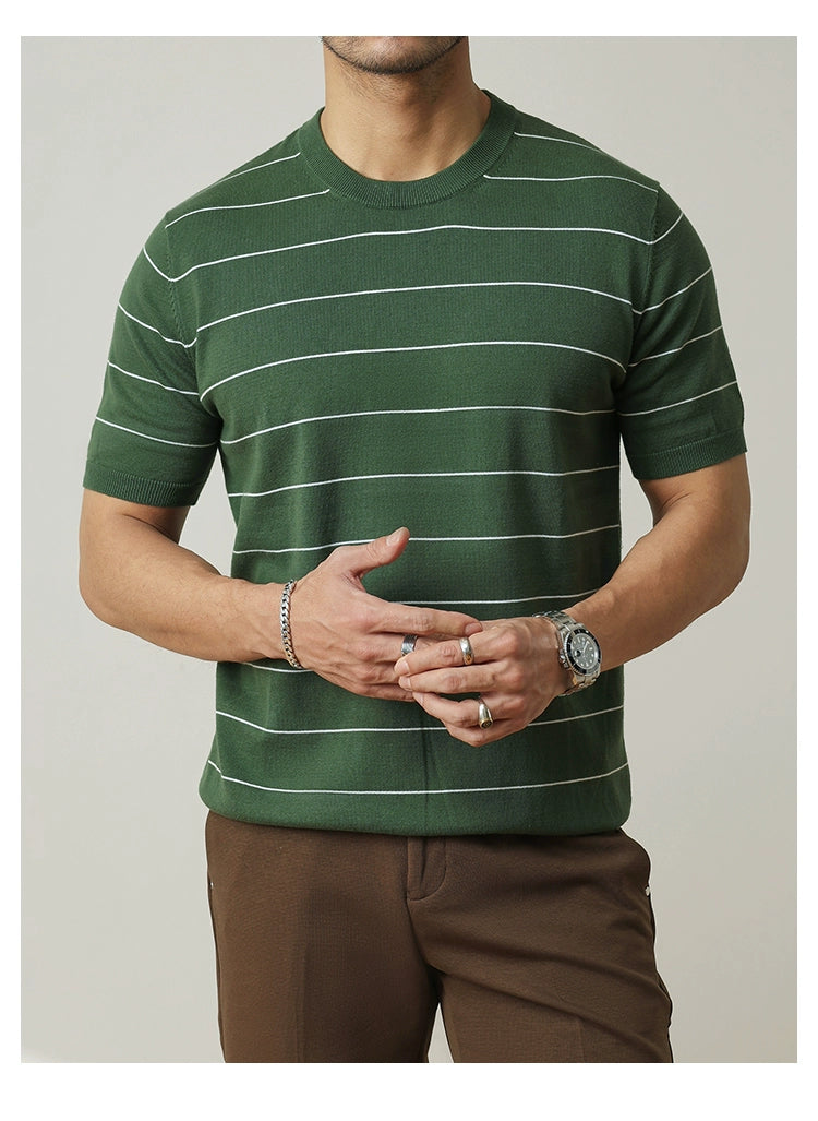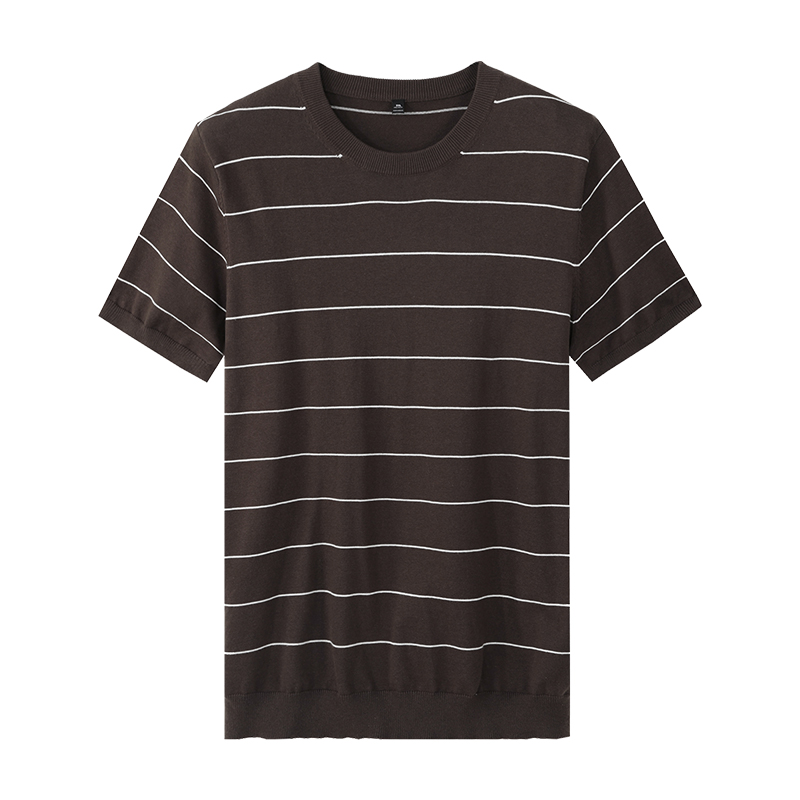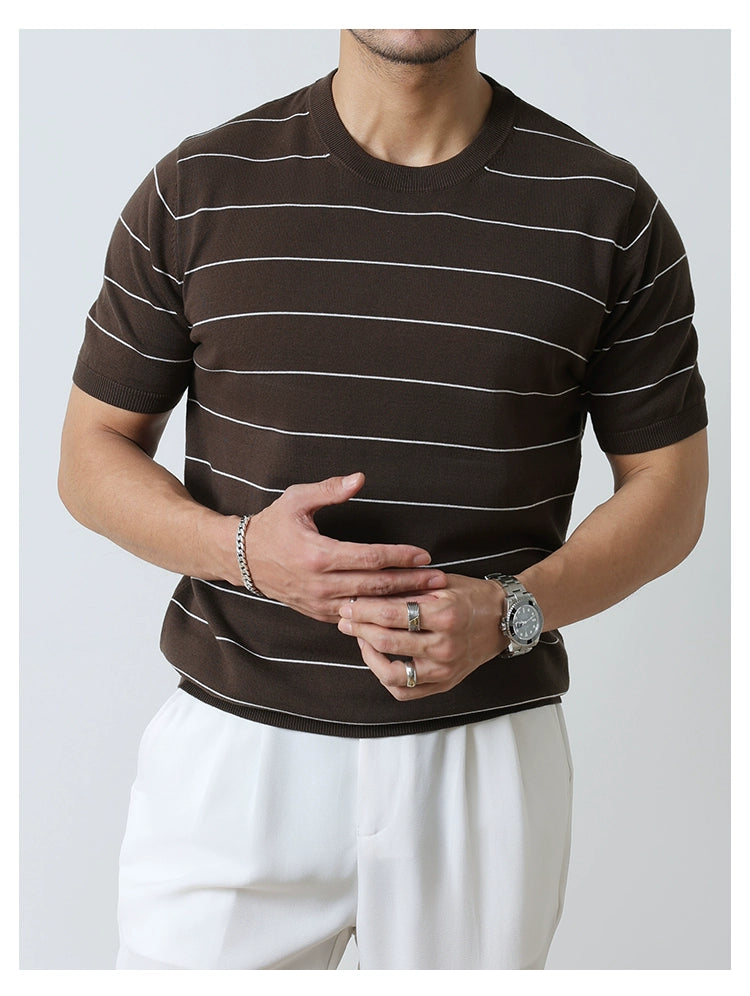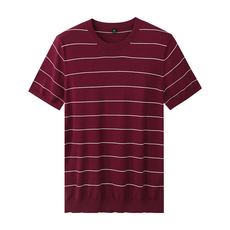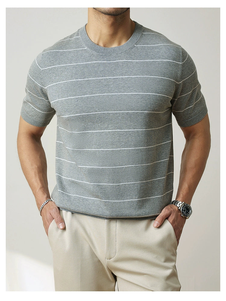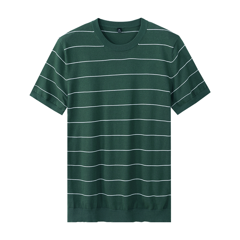 夏季經典百搭14針橫條紋短袖高級商務休閒感純棉T恤