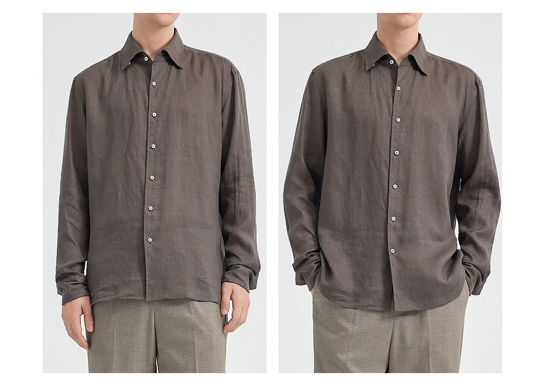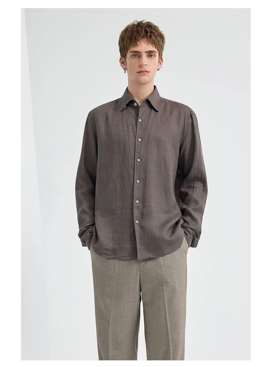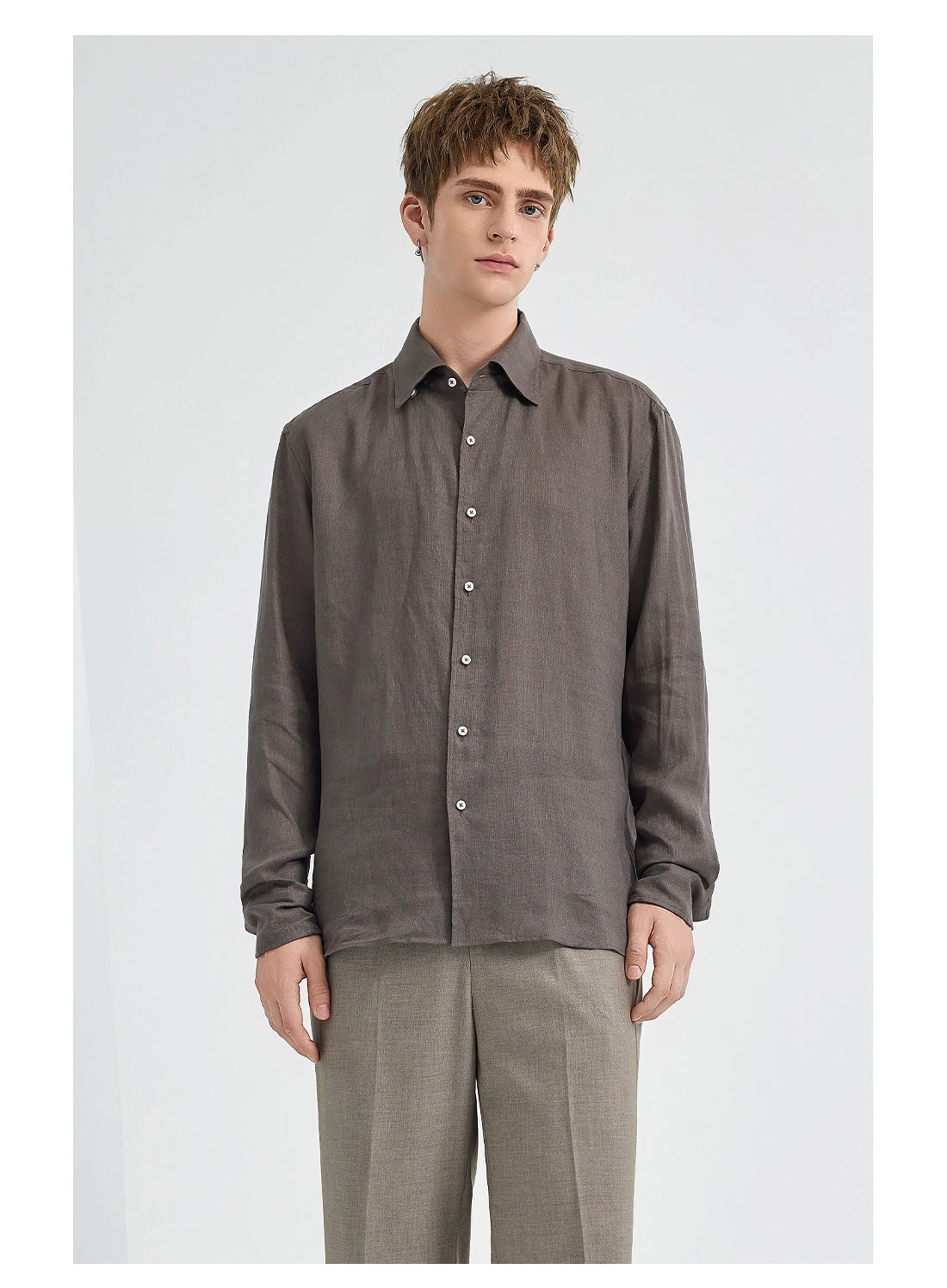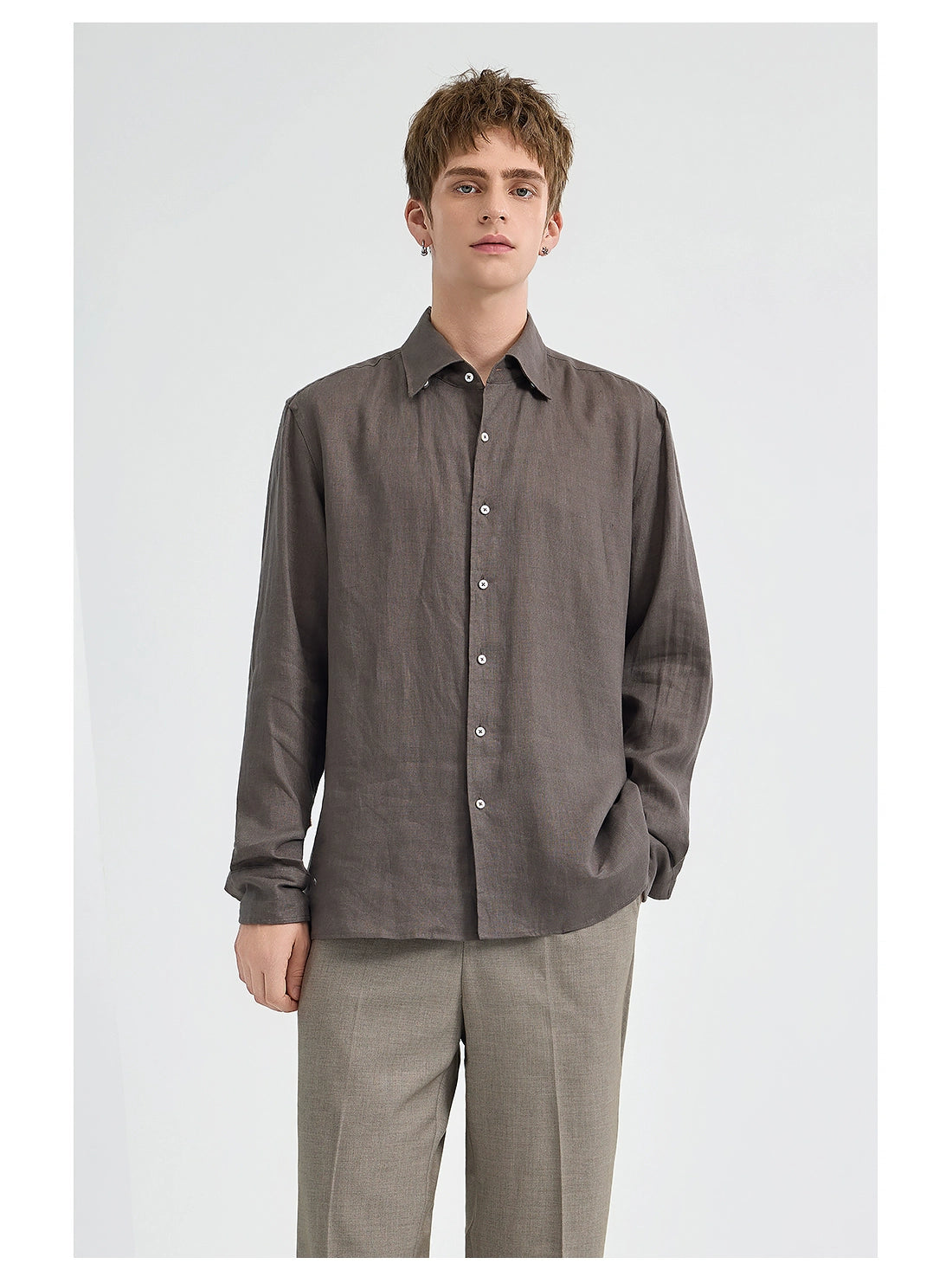 亞麻老錢風襯衫男長袖25秋季新款通勤休閒深灰色襯衣