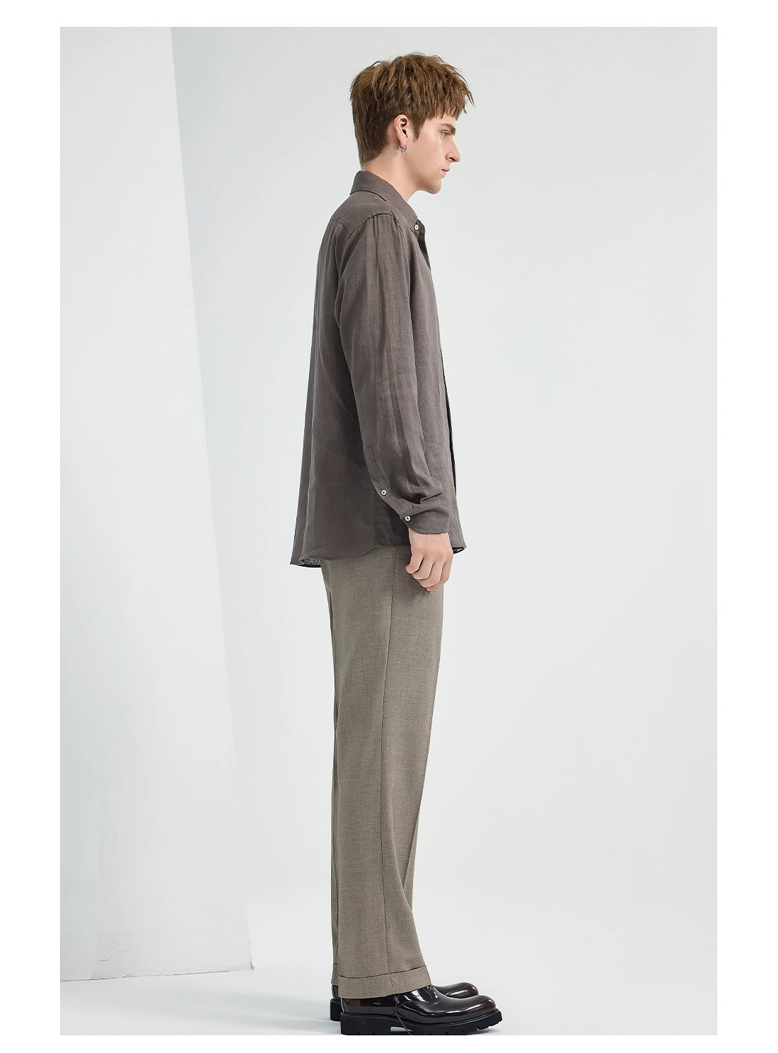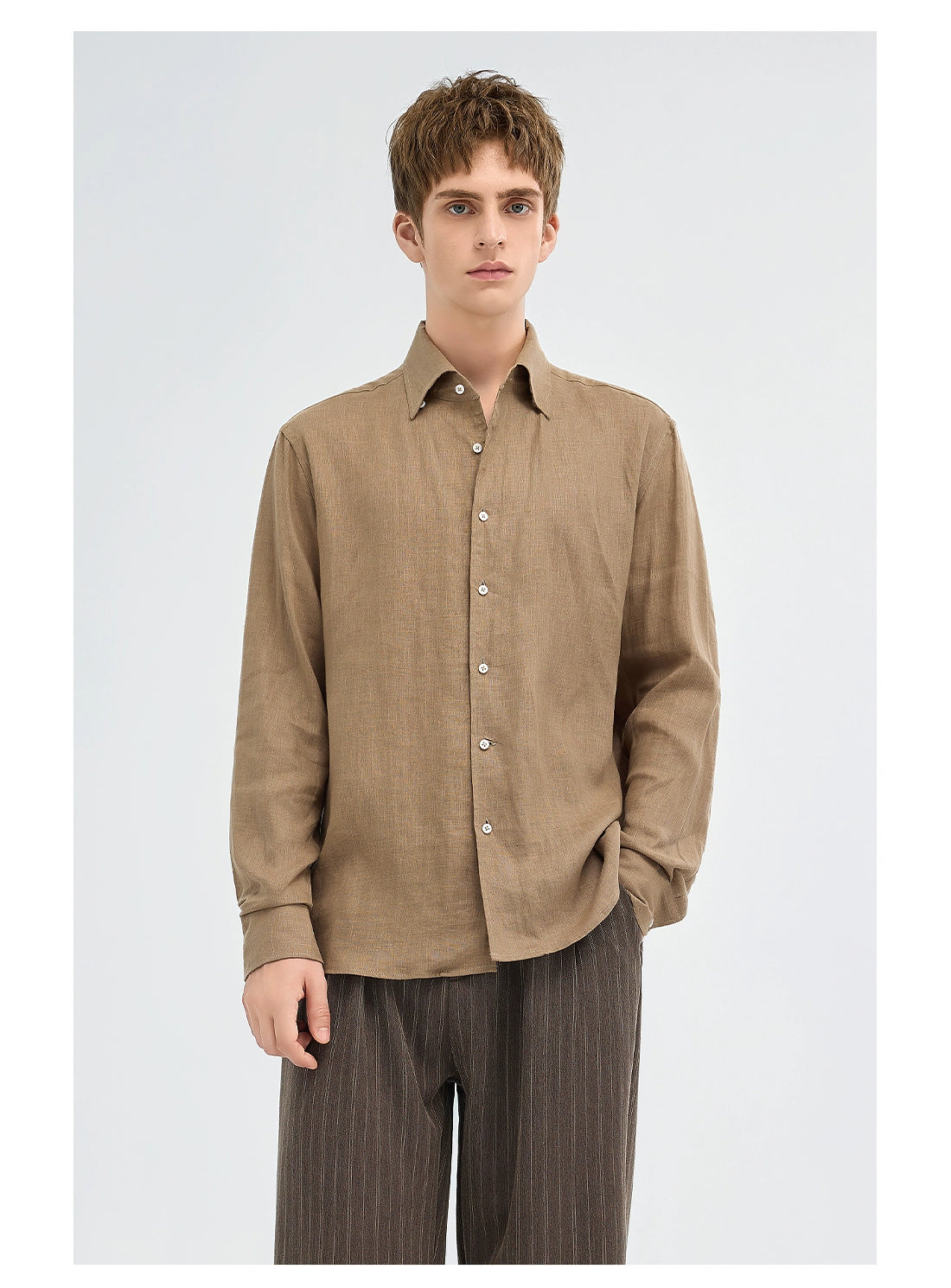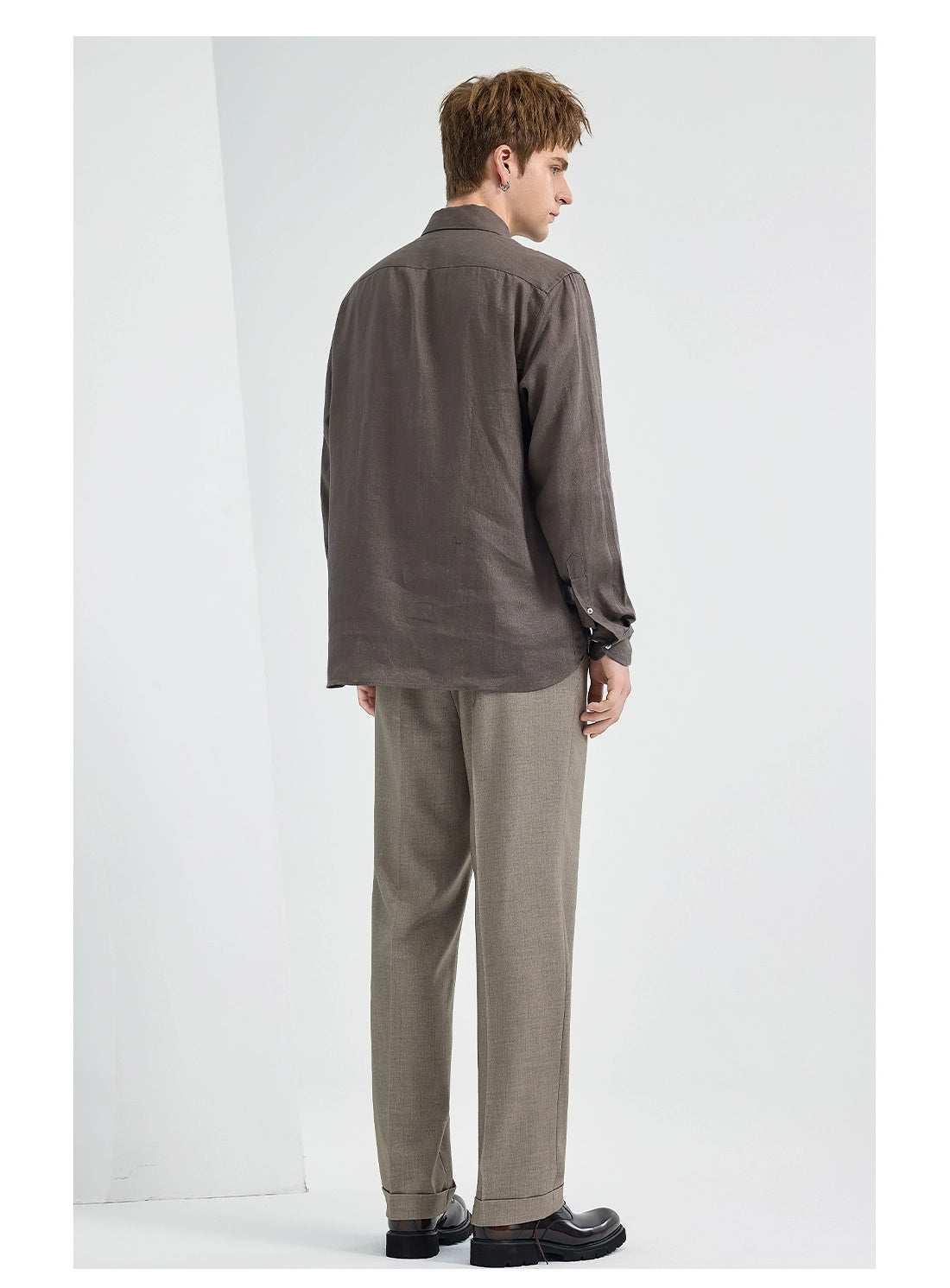 亞麻老錢風襯衫男長袖25秋季新款通勤休閒深灰色襯衣