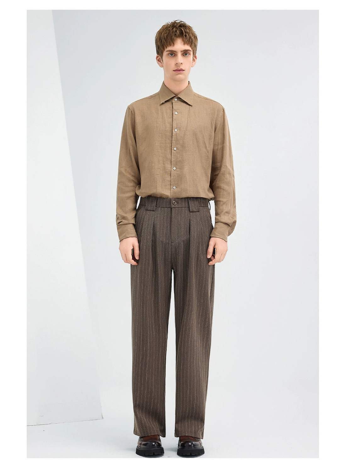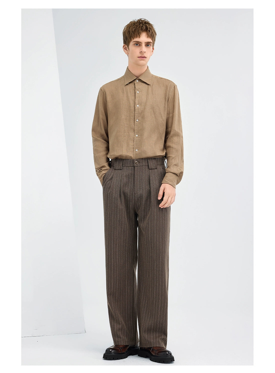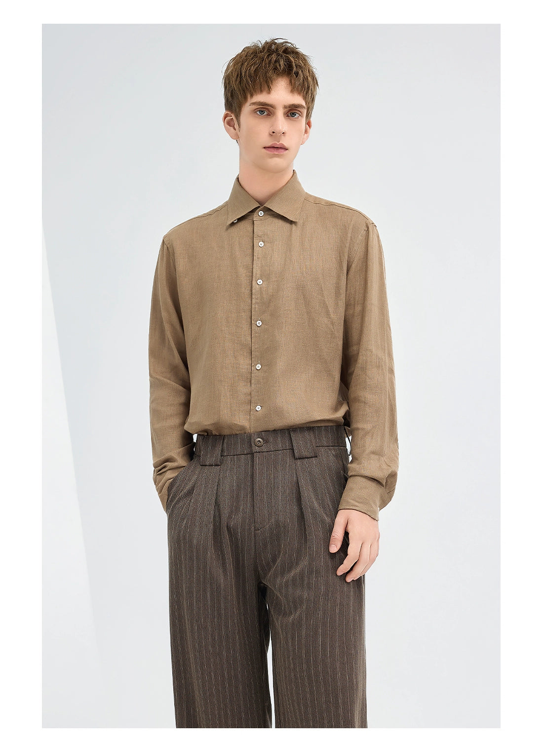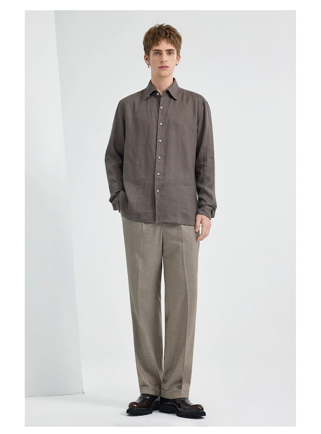 亞麻老錢風襯衫男長袖25秋季新款通勤休閒深灰色襯衣
