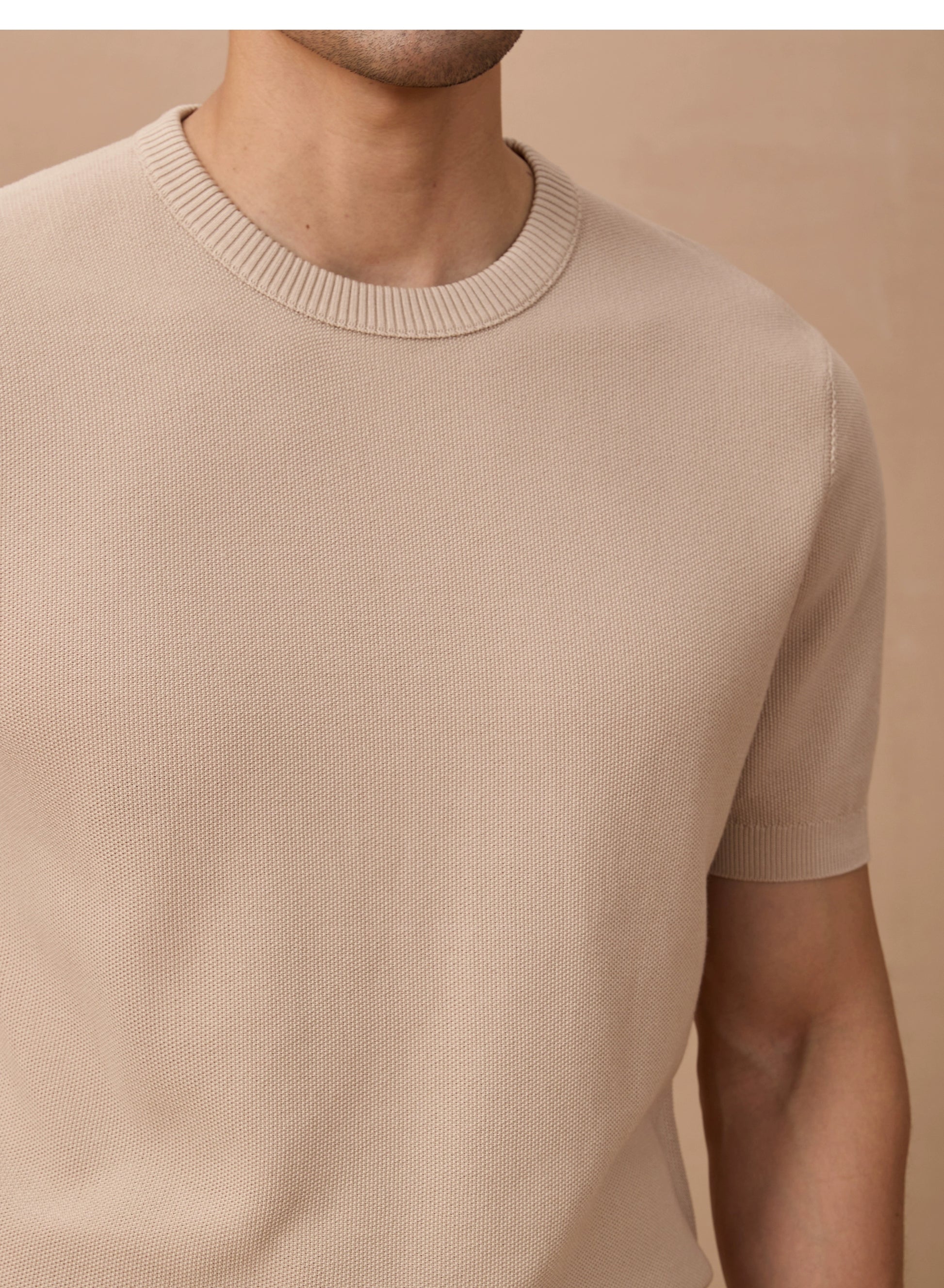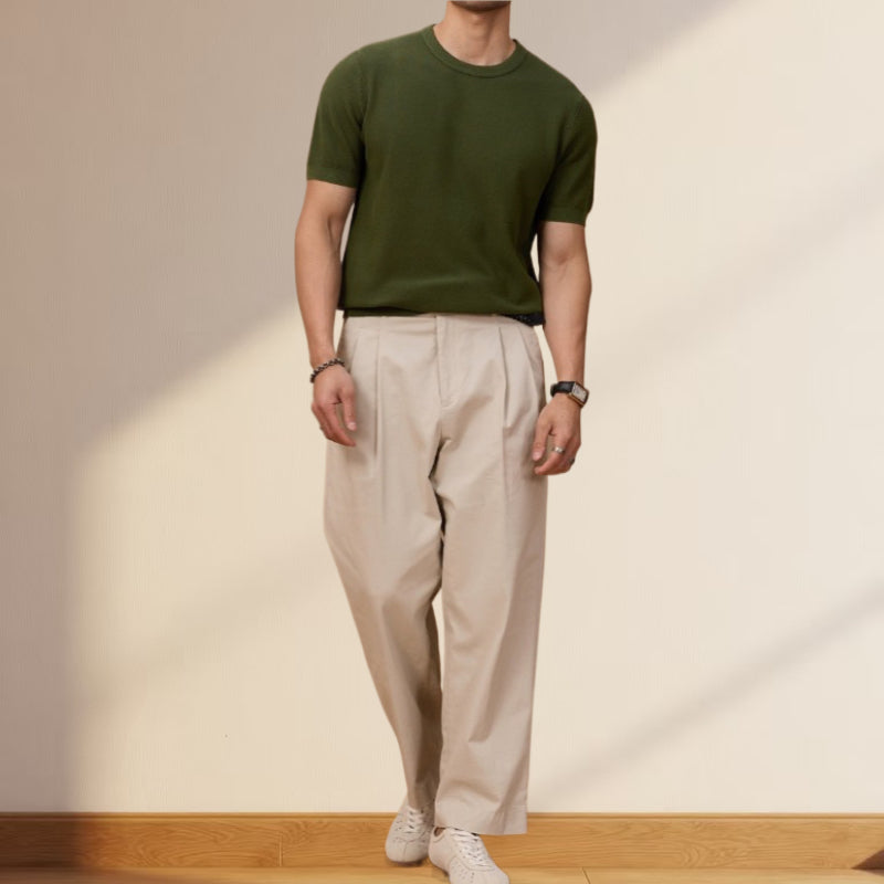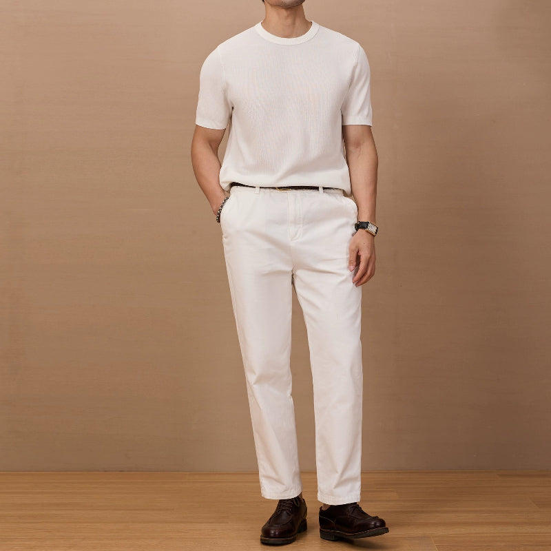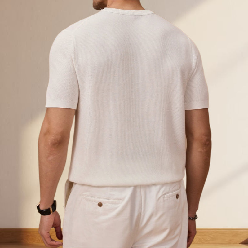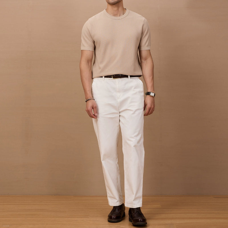 老錢風萊賽爾纖維針織短袖通勤義式復古純色圓領T恤男士