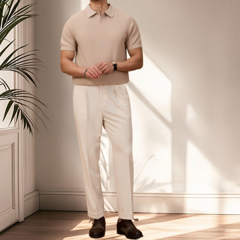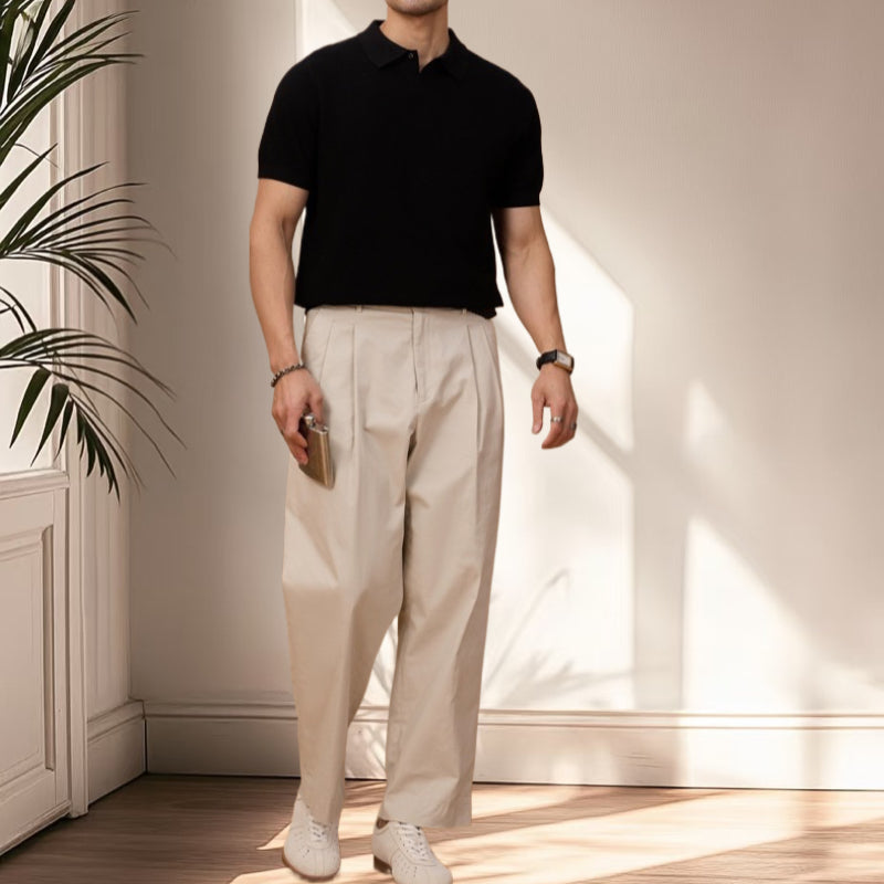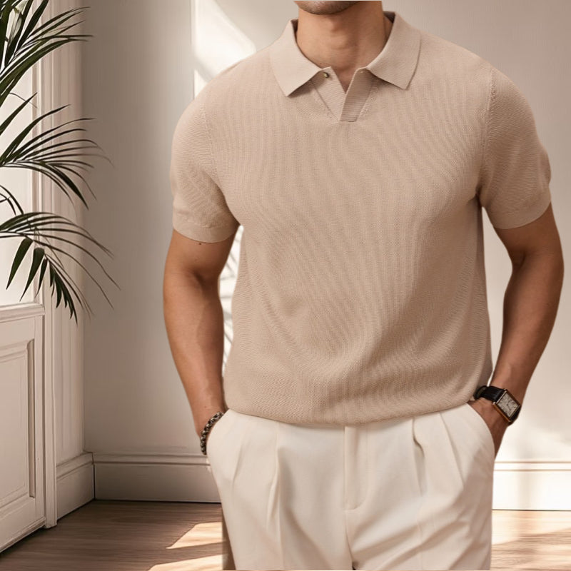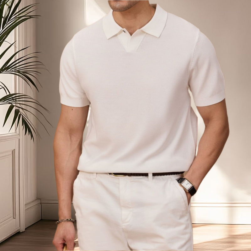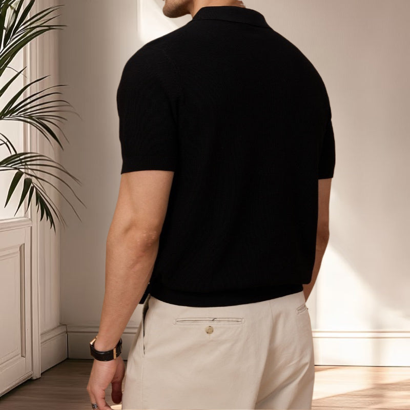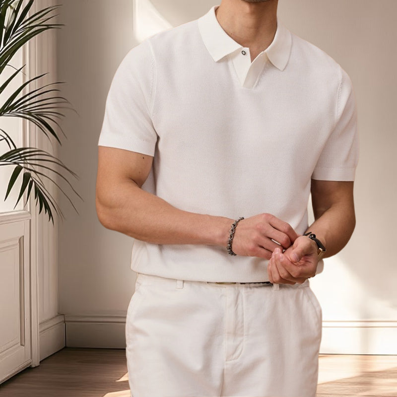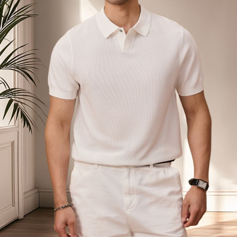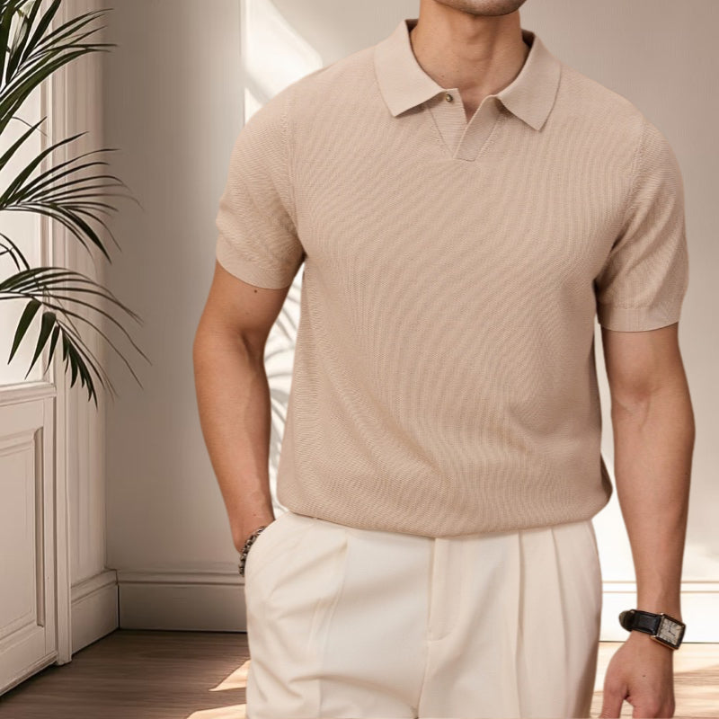 夏季老錢風萊塞爾纖維純色休閒翻領針織POLO短袖衫T恤