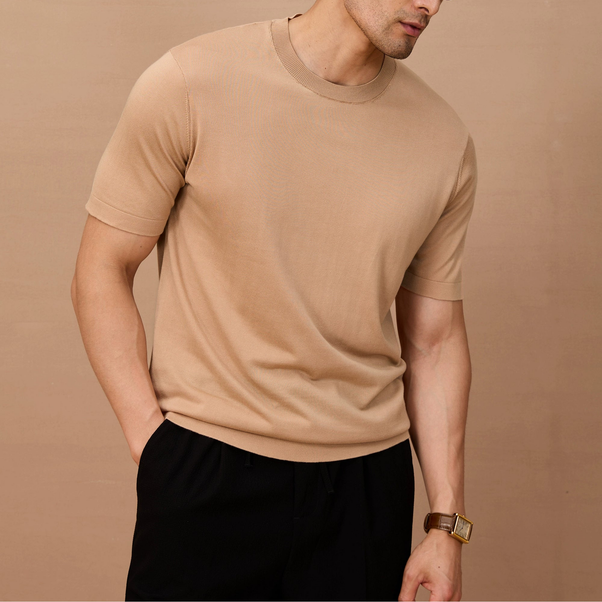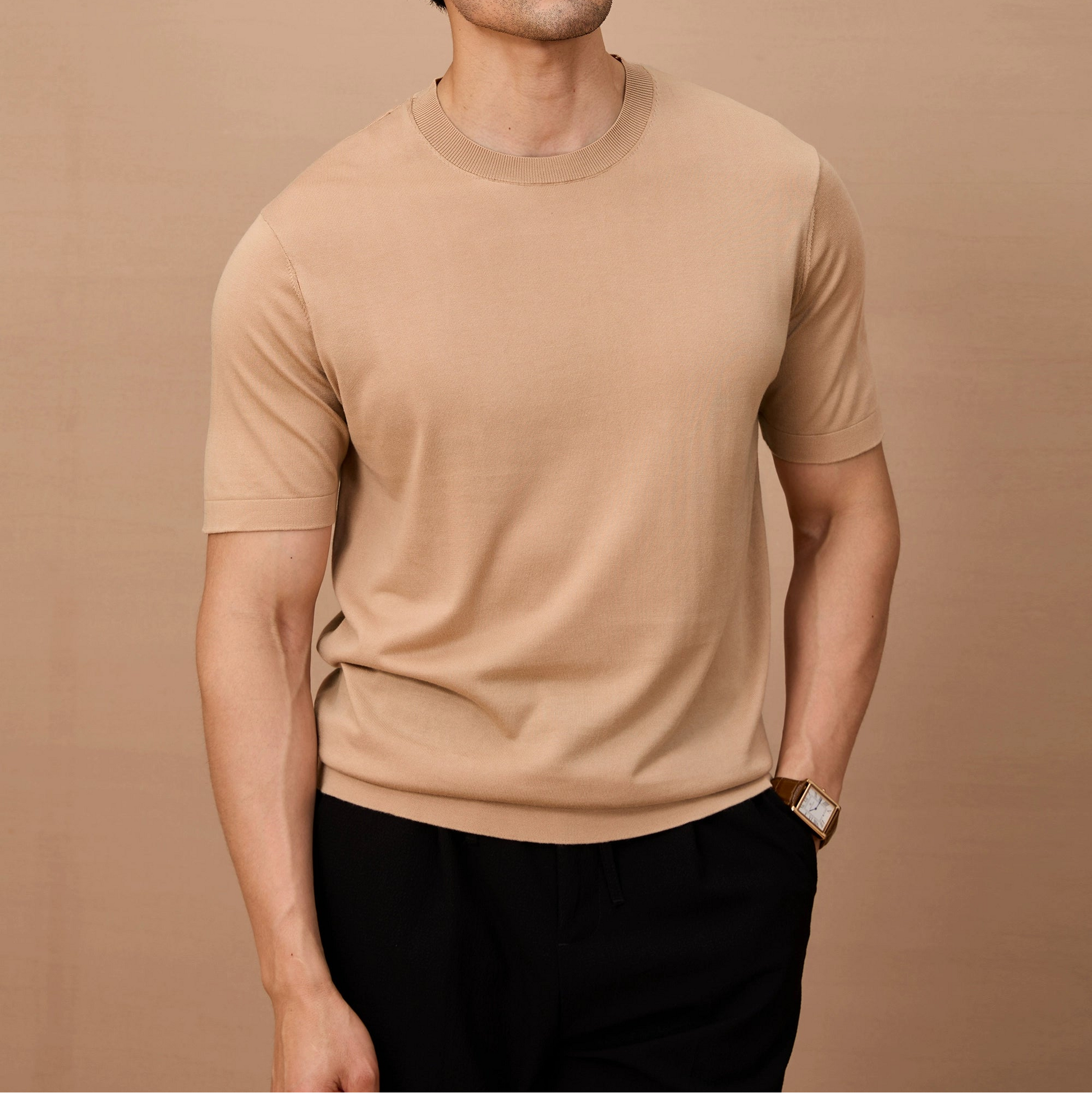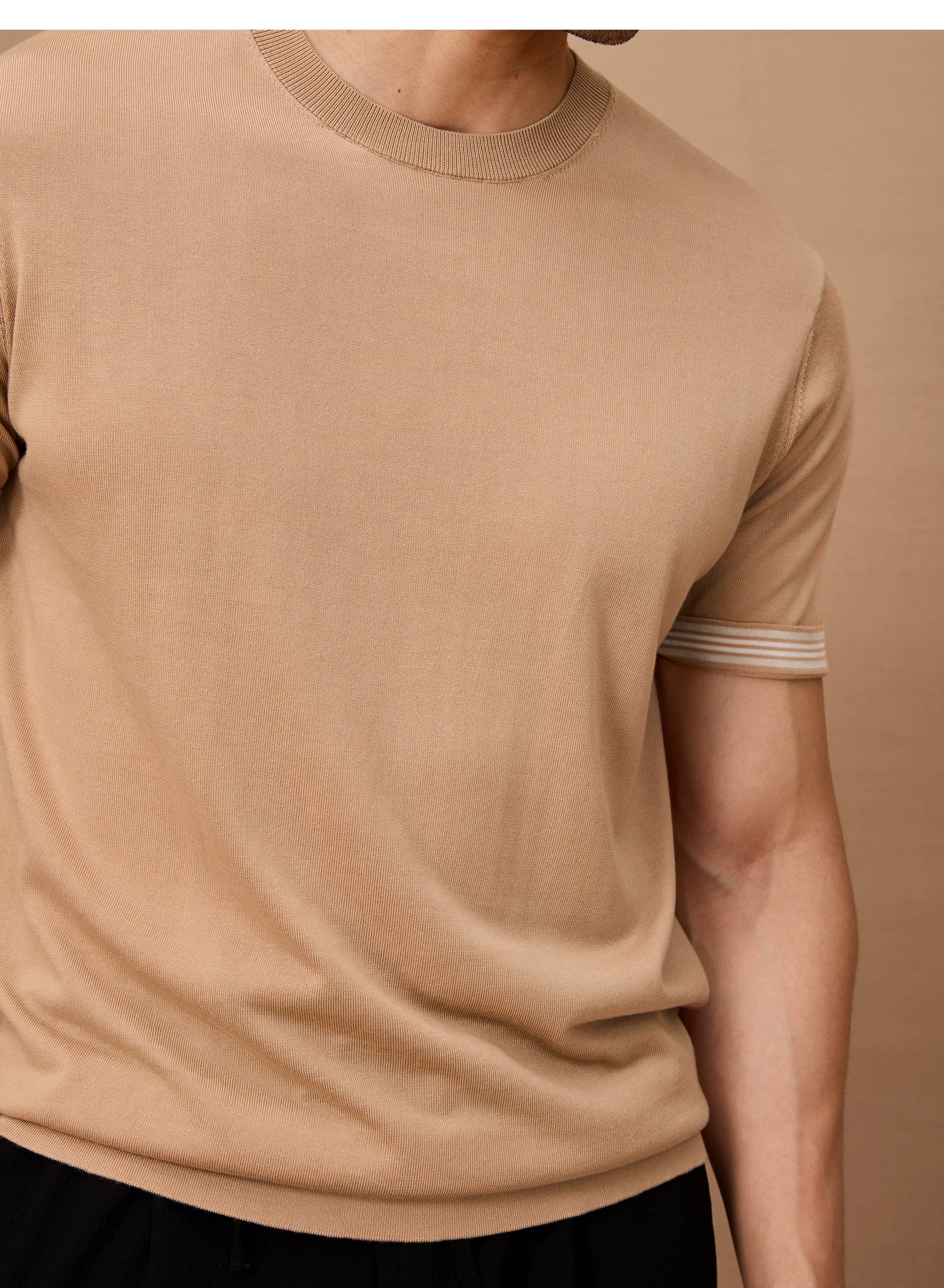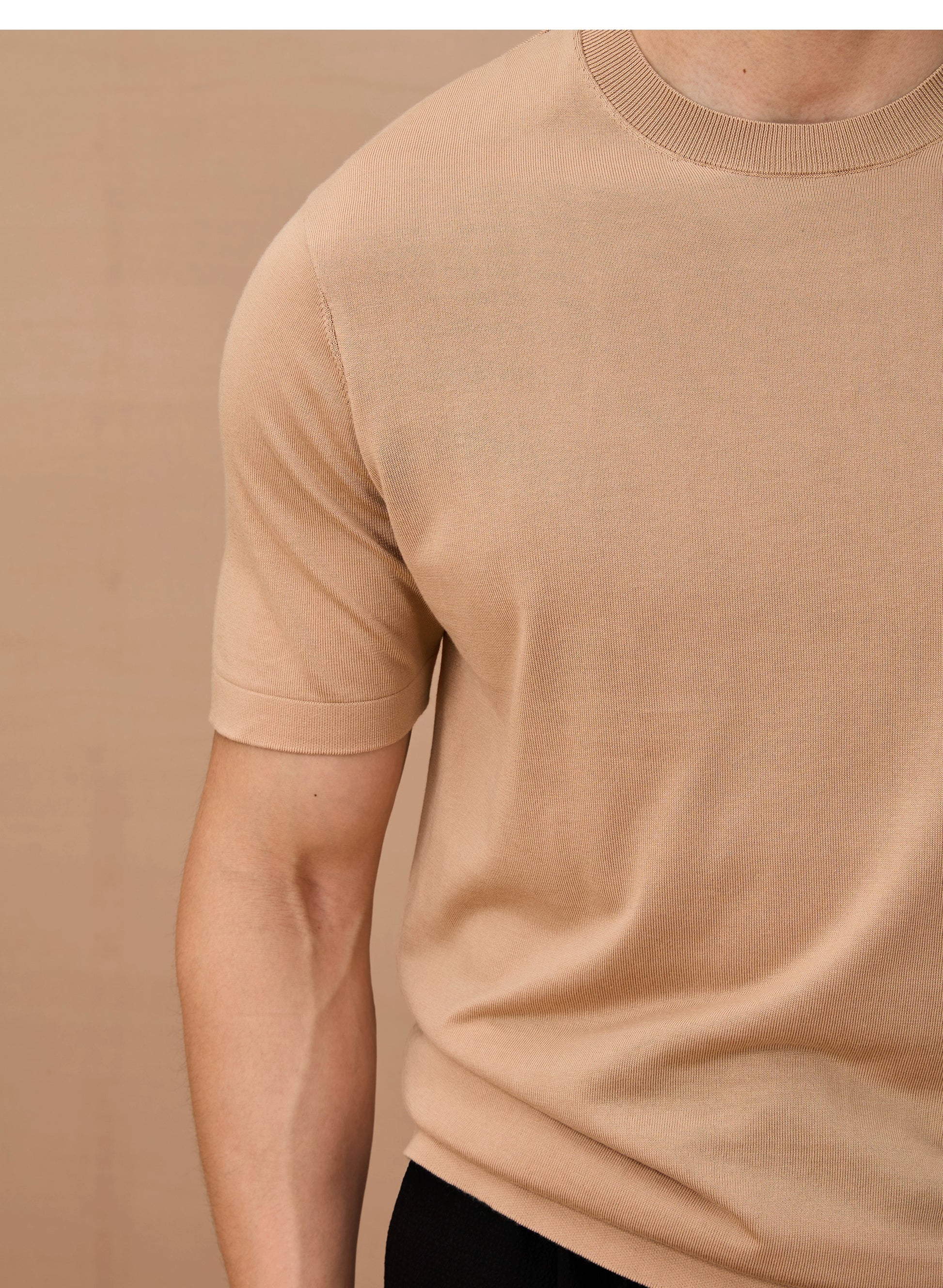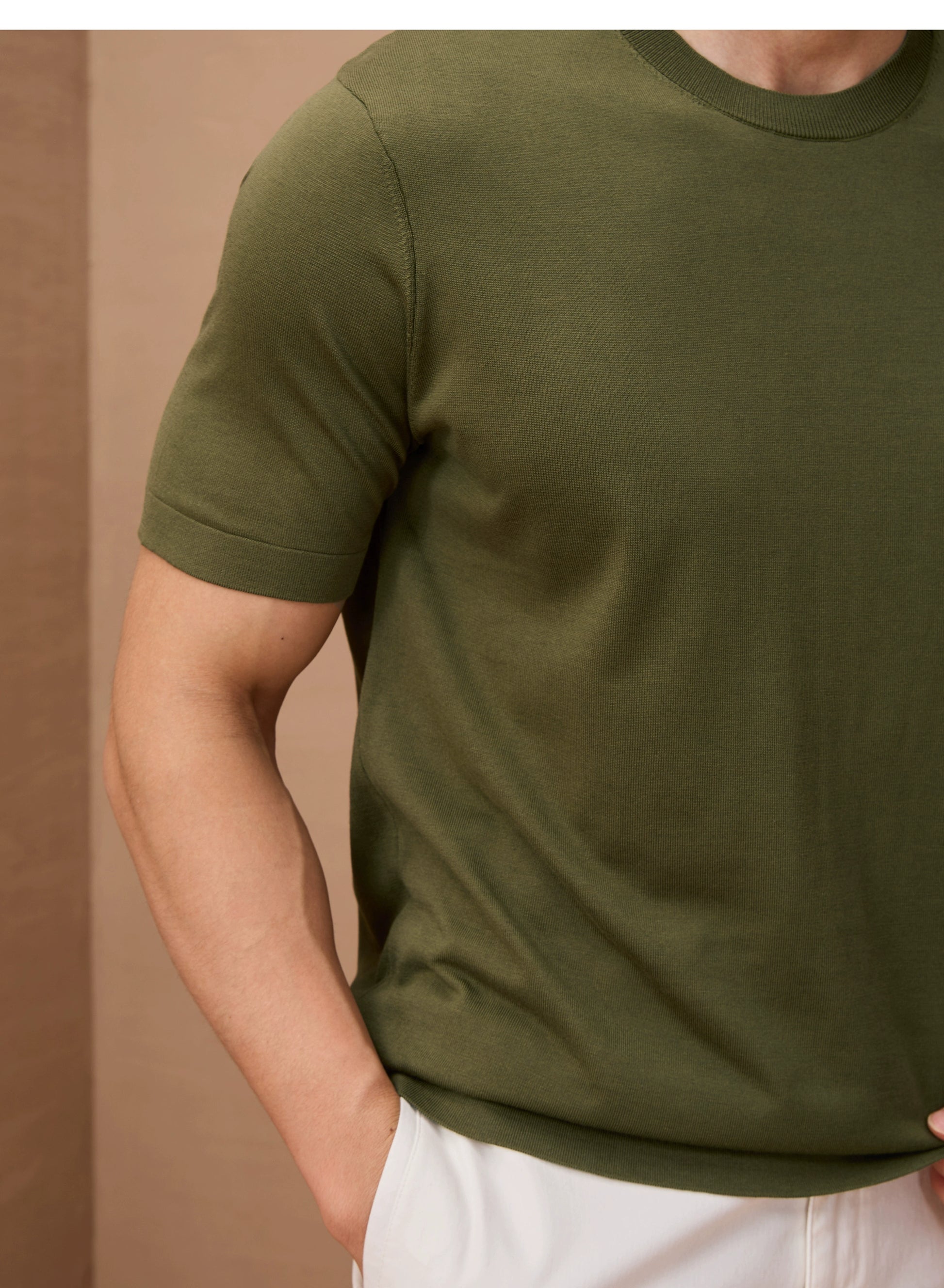 復古青年風圓領T恤,天絲涼感針織高彈性材質春夏舒適