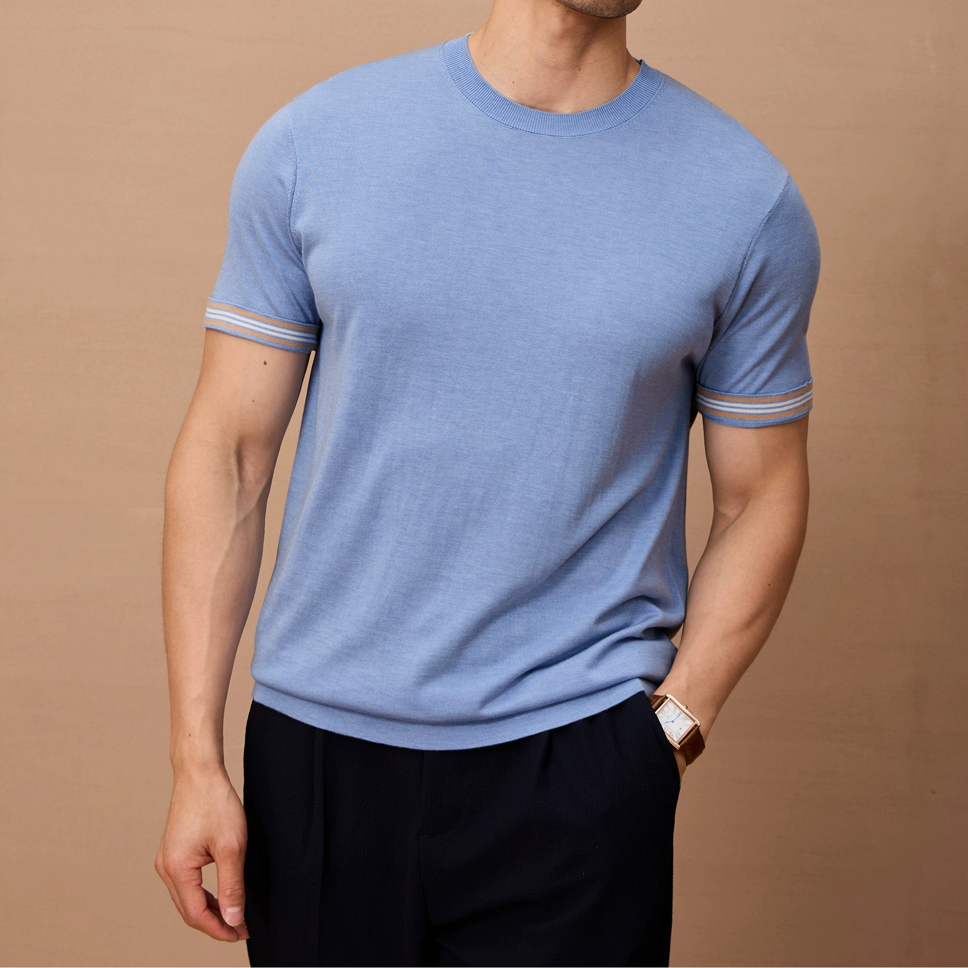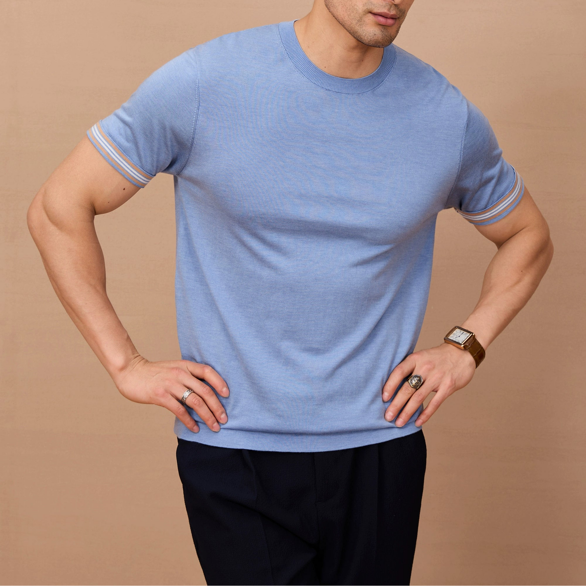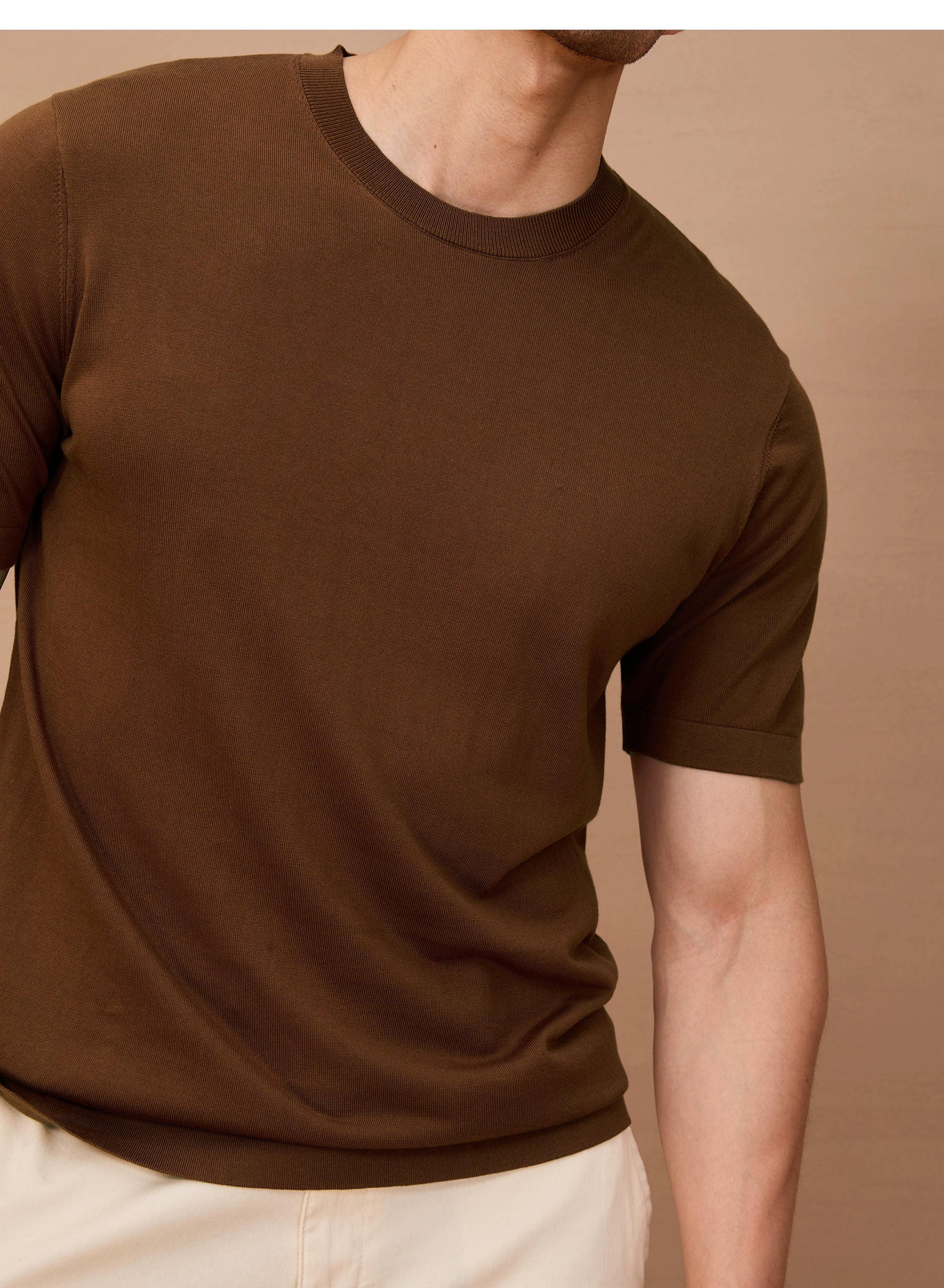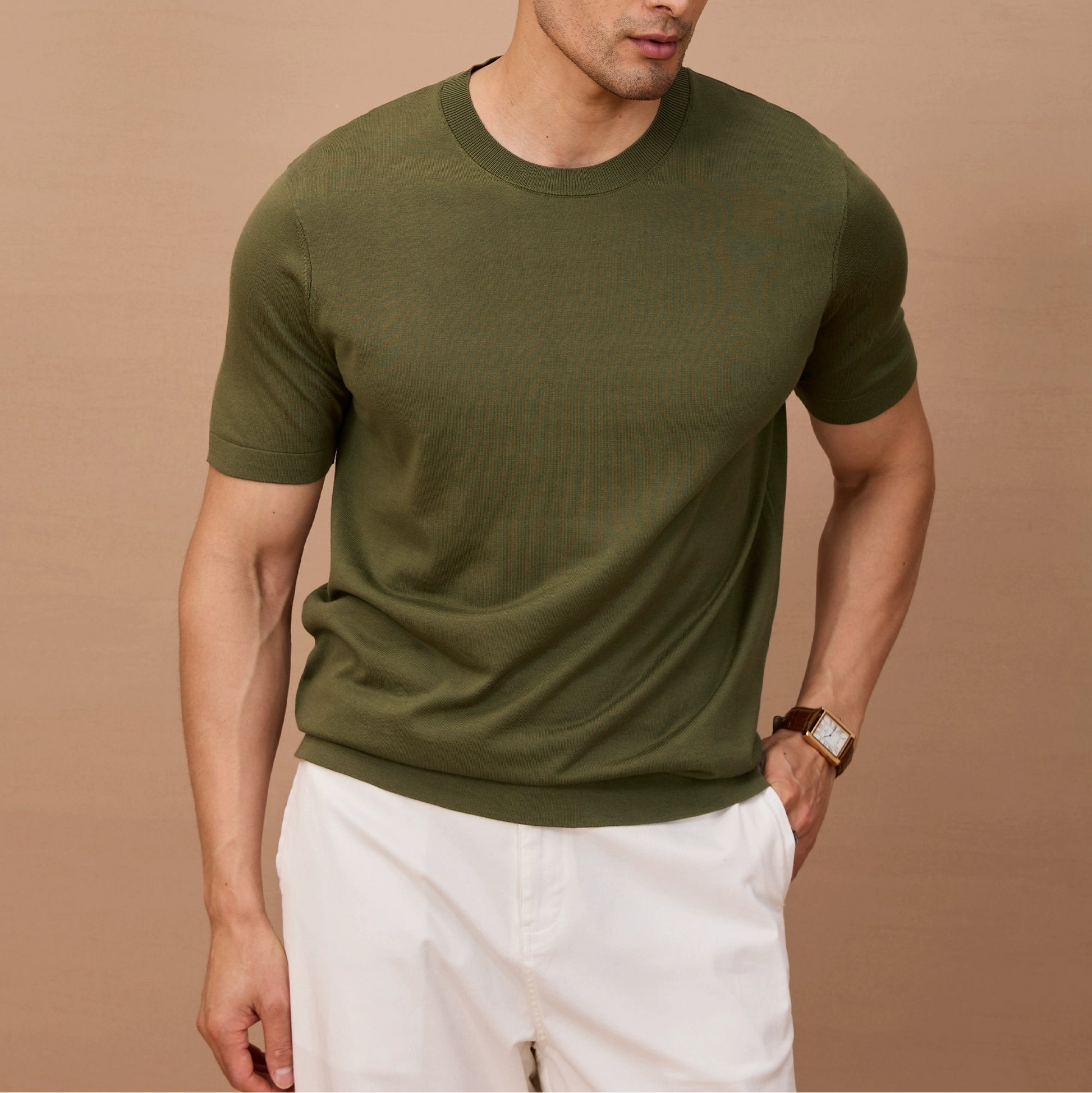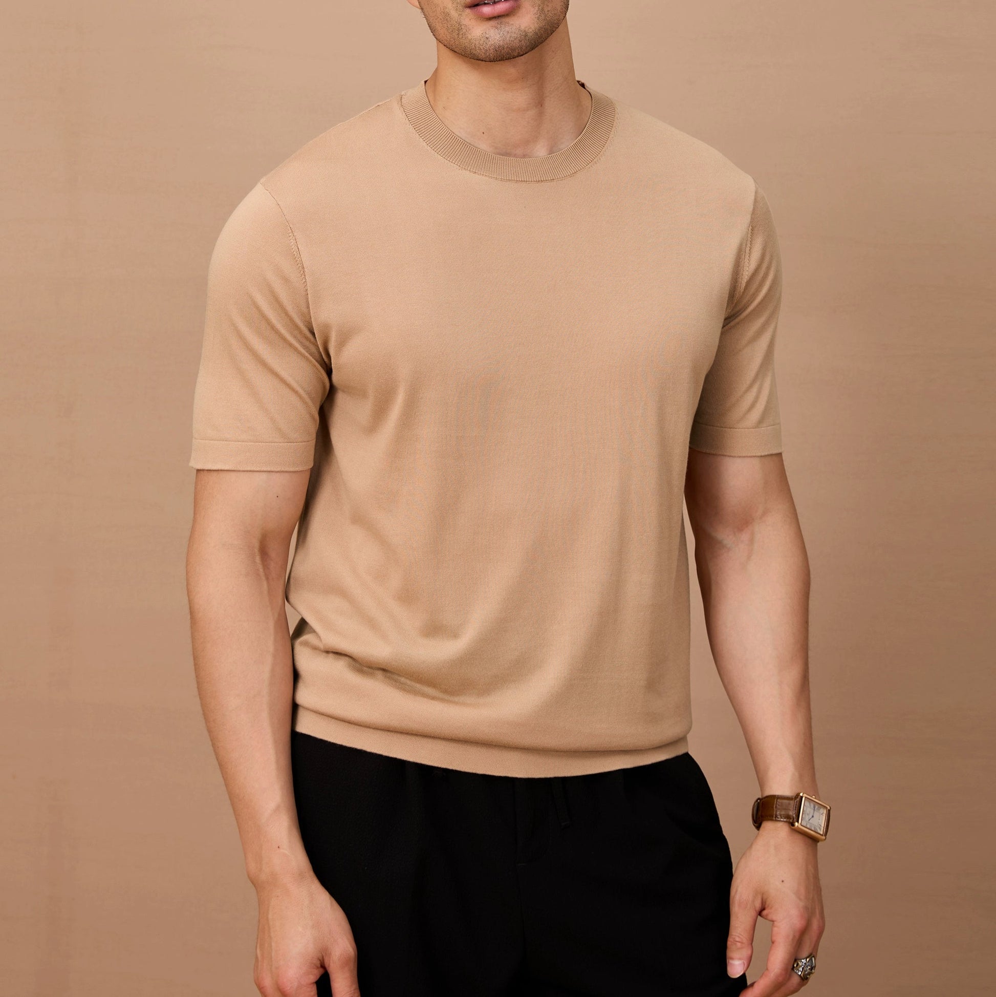 復古青年風圓領T恤,天絲涼感針織高彈性材質春夏舒適
