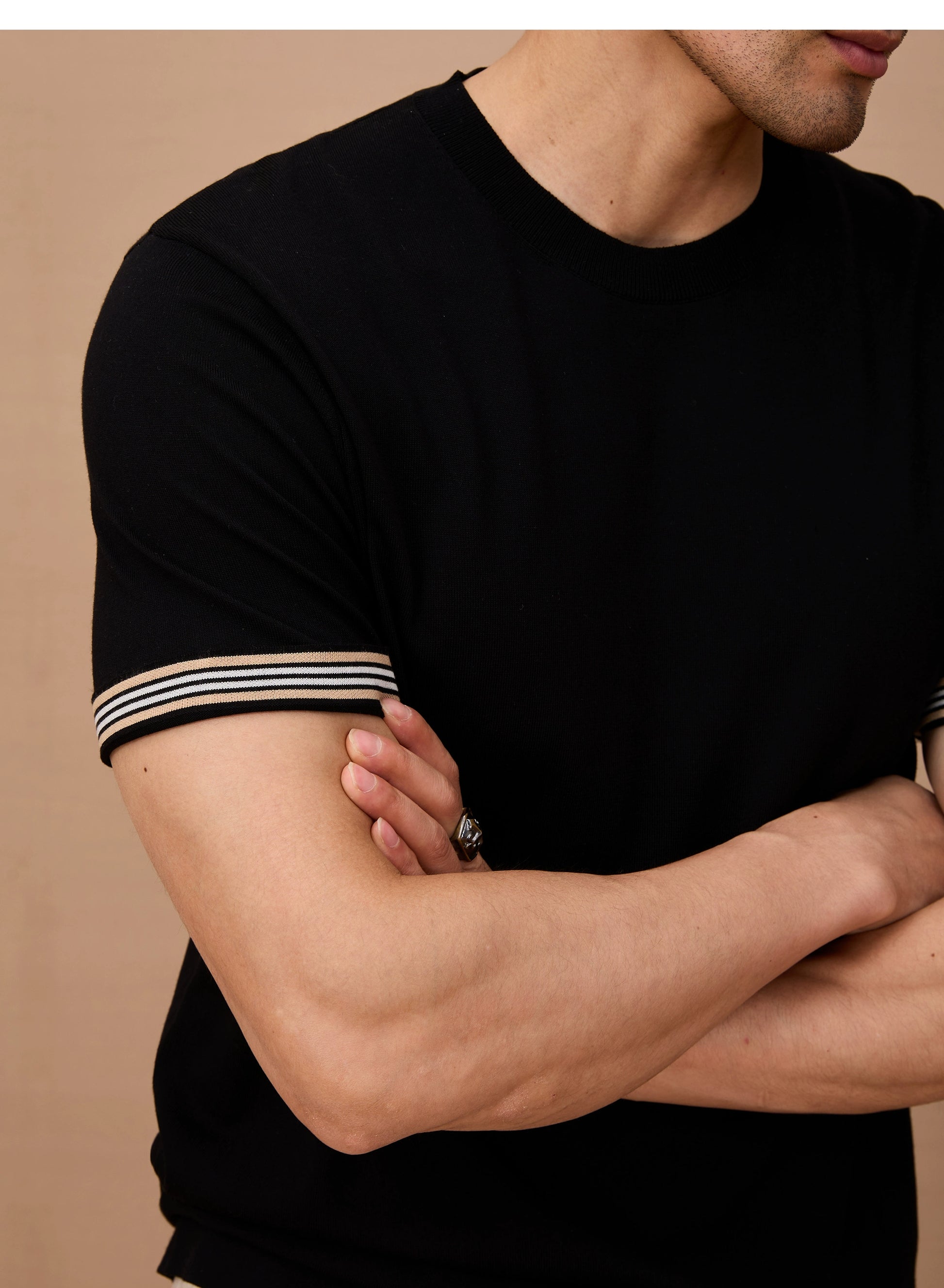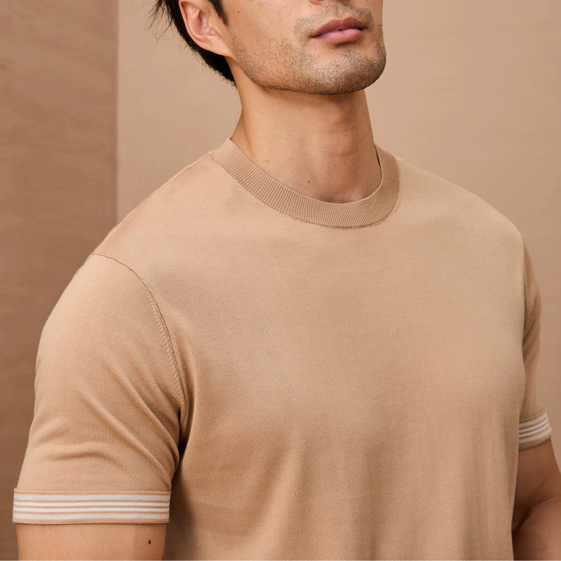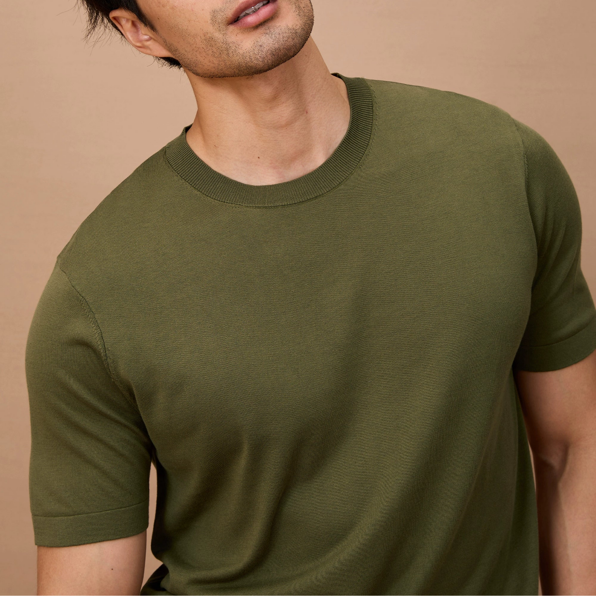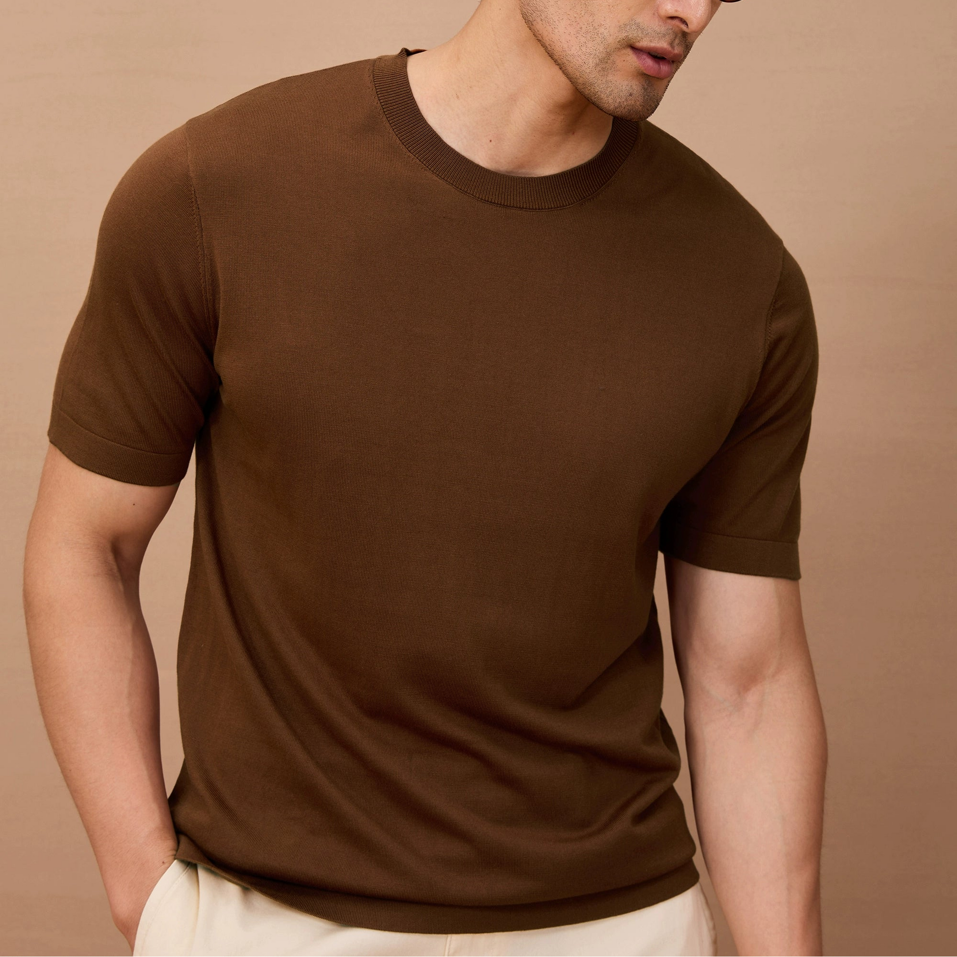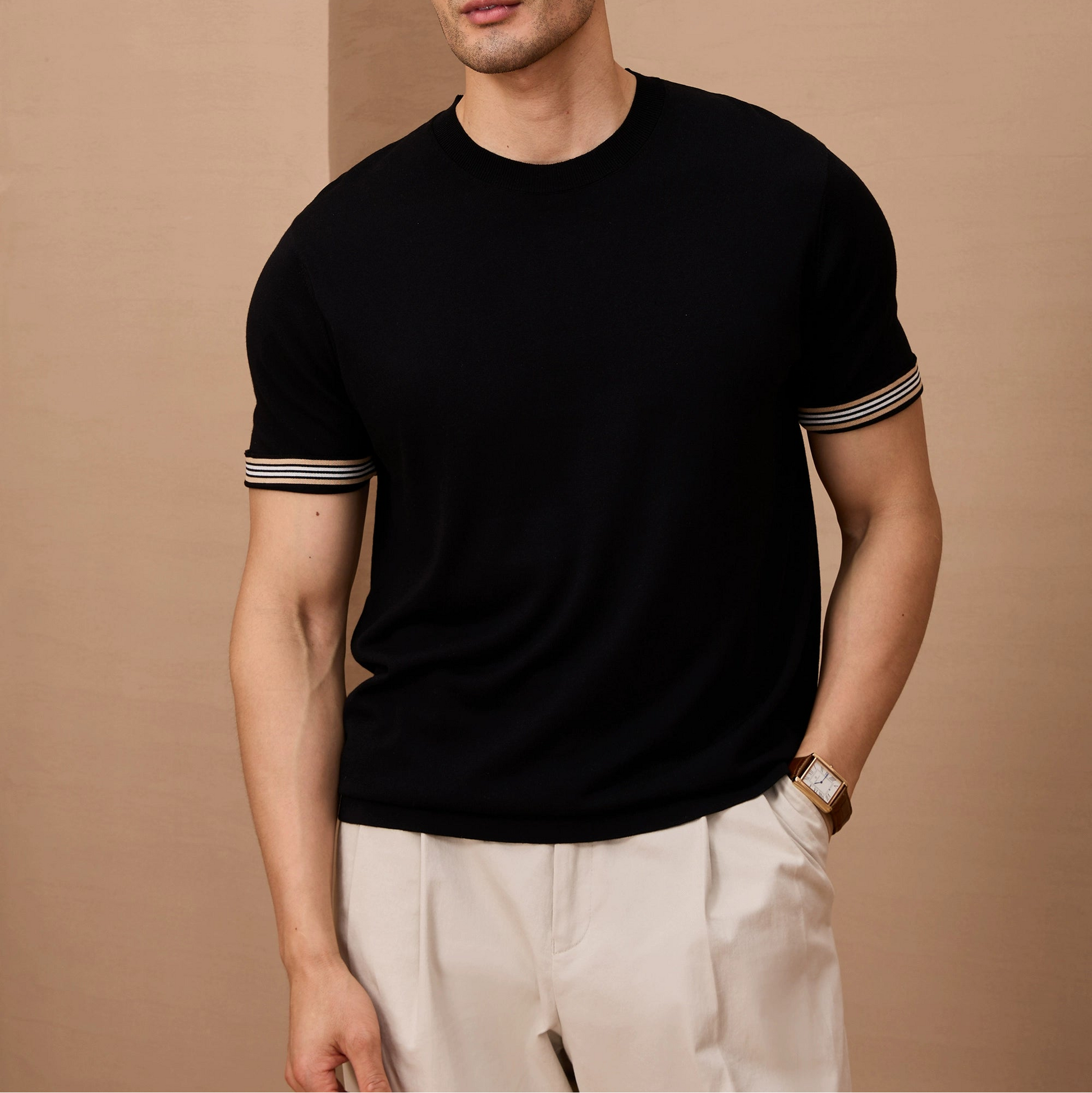 復古青年風圓領T恤,天絲涼感針織高彈性材質春夏舒適